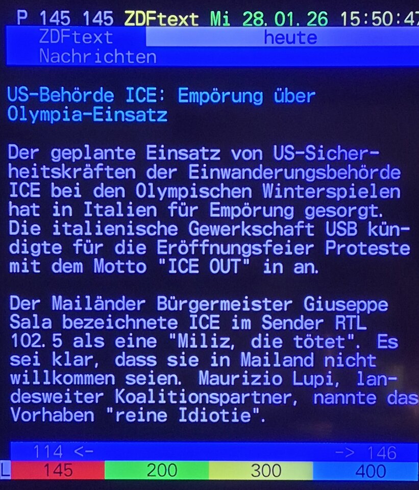 Mein lieber @Cadfael , du hast mal wieder den richtigen Riecher gehabt (haben ja Waschbären wohl häufiger)....Ich bin gespannt, wie Italien / Mailand das "Problem mit ICE" lösen wird. Ich glaube kaum, dass Meloni ausländische vermummte Sicherheitskräfte in ihrem Land dulden wird. Dann sollen die US Sportler eben zuhause bleiben!