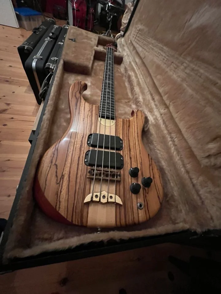 ich hatte zwischen 2006 und 2010 einen Persuader 4-Saiter, Baujahr 1990 mit P/J Pickupbestückung. Persuaders sind 32" Mediumscale Bässe die nur ein paar Jahre lang Ende der 80er/Anfang der 90er gebaut wurden und so eine Art günstige Version der schweineteuren Series Bässe sein sollten. Meiner war komplett aus Ahorn und hatte einen unglaublichen Attack. Der Ton sprang einem sofort ins Gesicht. Mein Persuader hatte auch eine andere, dreieckige Kopfplatte mit 2L/2R Anordung der Mechaniken.