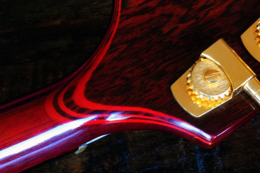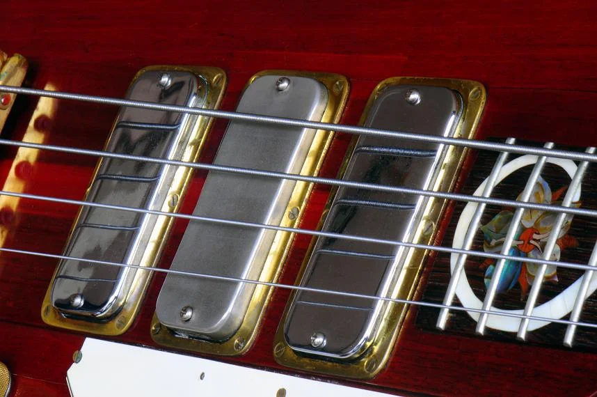Dritter (Middle Position) Pick Up (kein Alembic Dummy !) Mehrlagige Ahorn-Verstärkung am Hals-Kopfplatten-Übergang (die neuralgische Bruchstelle), Alembis-custom-made Hardware, neue Lackierung...... weiß auch nicht alle Details - hab ihn "nur" gespielt - ein Traum !!! - siehe Foto