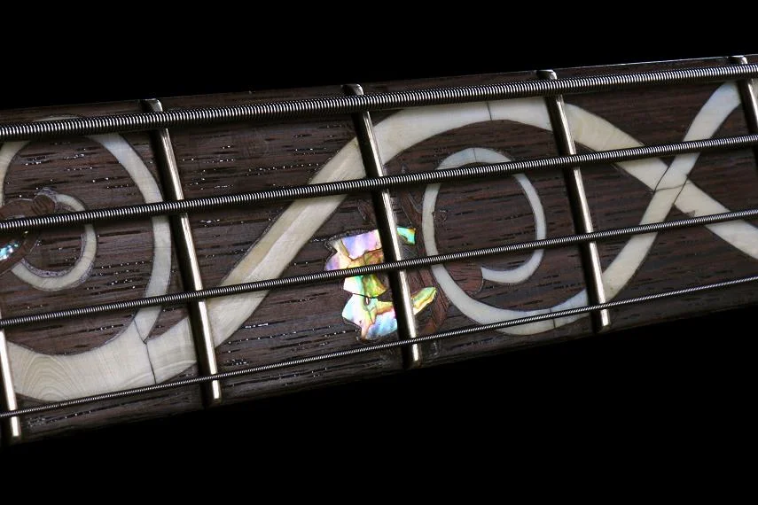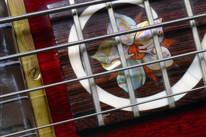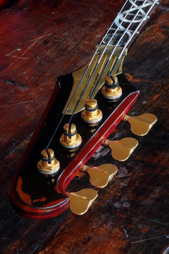 Dieser Bass ist wirklich absolut einzigartig ! (der Beleg von der Alembic-Modifikation ist vorhanden ) Griffbretteinlagen aus Abalone, Sterling Silber, und ? (- sorry weiß ich nicht mehr)