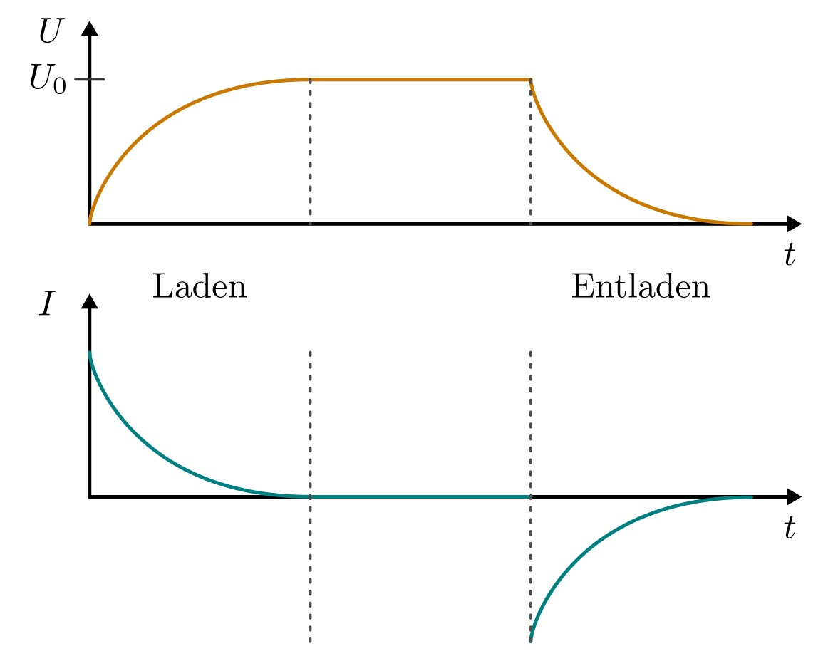 Jetzt kommt der Kondensator hinzu. Der hat folgende Lade/Entladekurve: