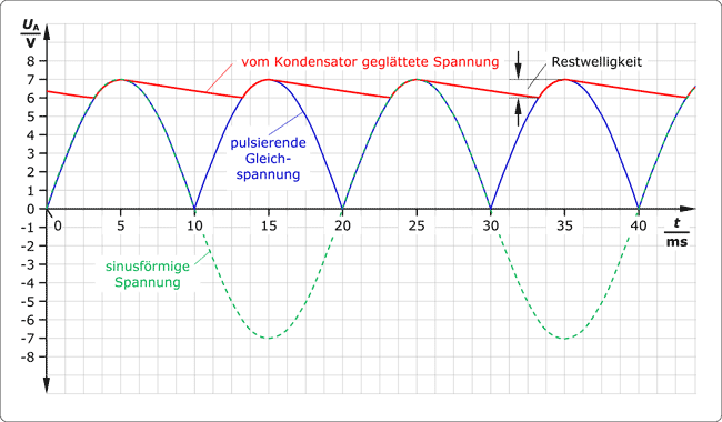 Je größer aber der Kondensator ist, umso kleiner ist die Restwelligkeit.