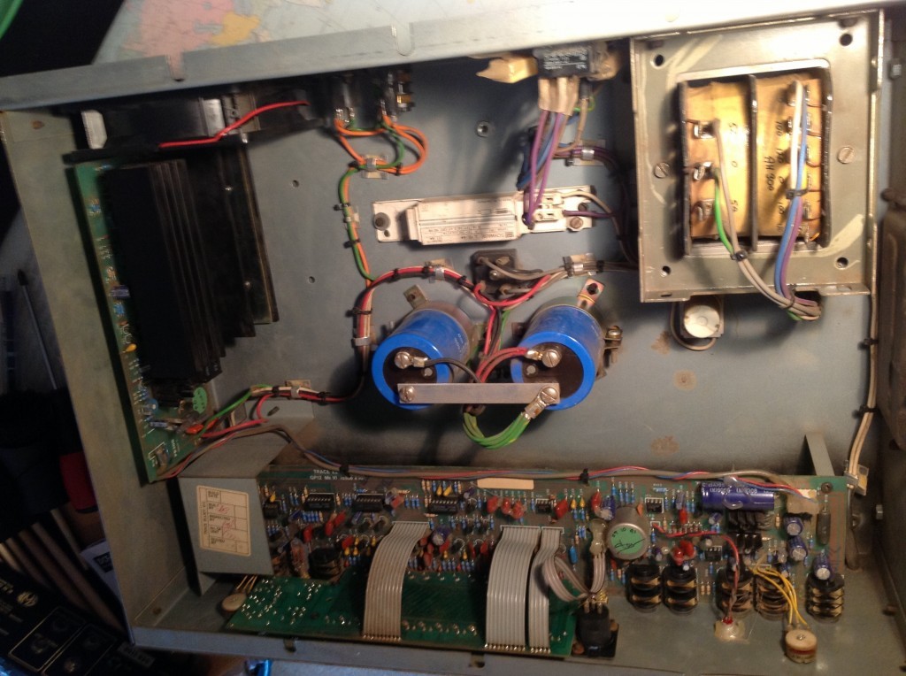 War ein alter Trace AH300, der jetzt bei BasseurDuRoque steht. Man beachte die Trafo-DI und die - für 300Watt vergleichsweise fetten Elkos.