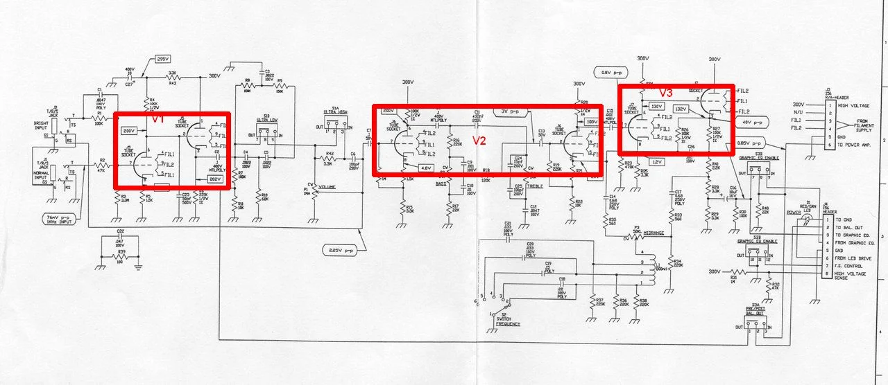 Wenn auf einem Schaltplan (hier geht es speziell um den Schaltplan der Vorstufe des SVT II non pro bzw. des SVT IIP) die Stufen nicht explizit mit V1, V2, V3 etc. bezeichnet sind, wie finde ich heraus, welche Röhre welcher Stufe entspricht?
