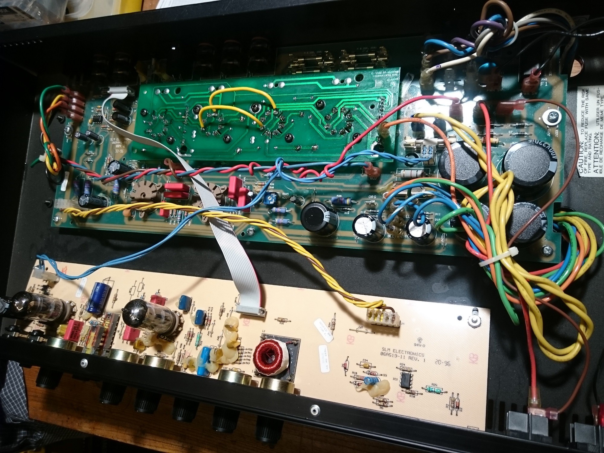 Die sind noch von vor der Steckkontakte-Reparatur drin, die sollten den Strom von der anderen Seite holen, wenn durch die schlechte Kontaktleiste nicht genug Strom kommt.Sind die beiden gelben Brücken, um zwei gerissene Leiterbahnen zu überbrücken? Kann mich gar nich erinnern, dass die bei mir drin waren.