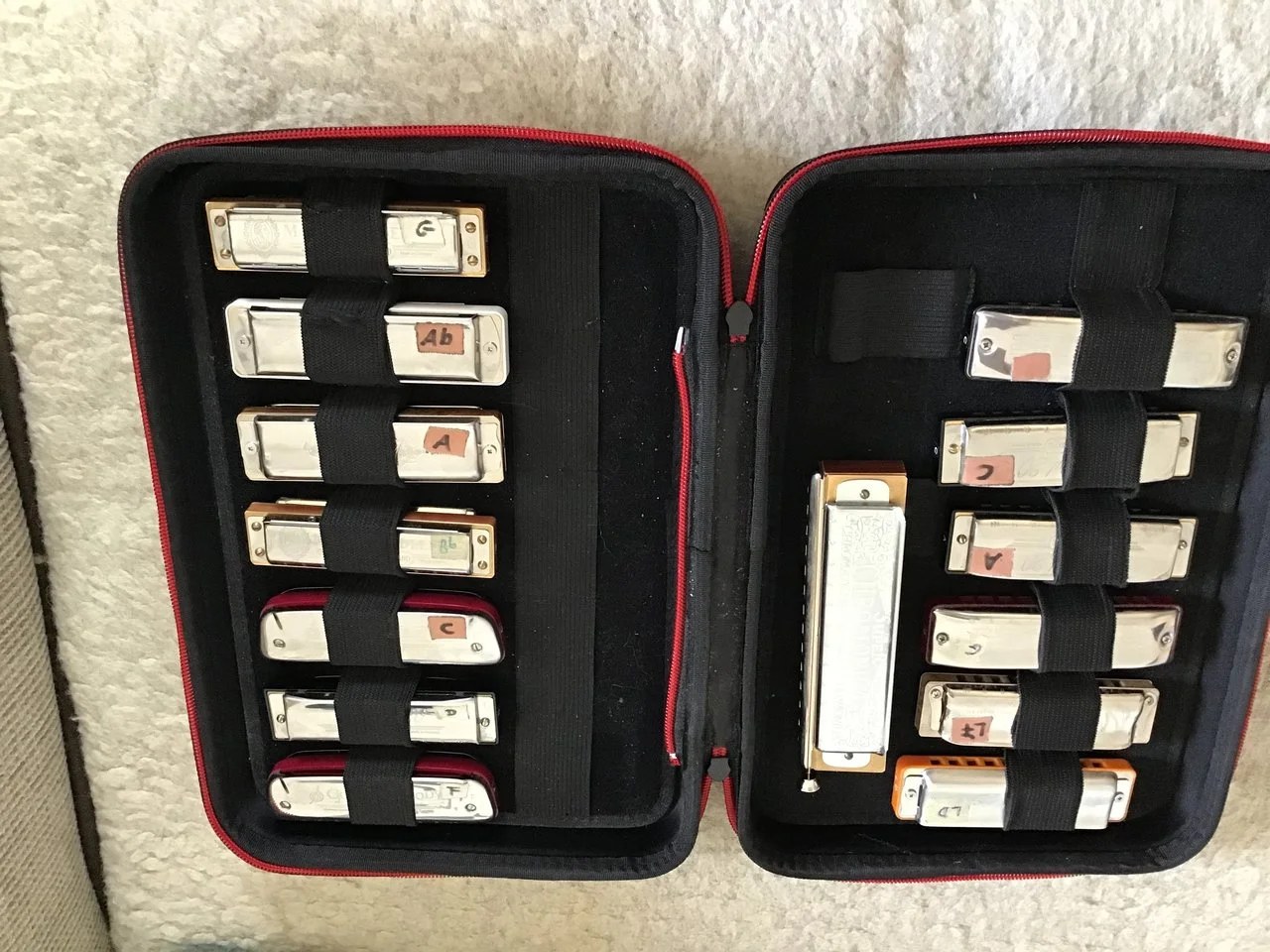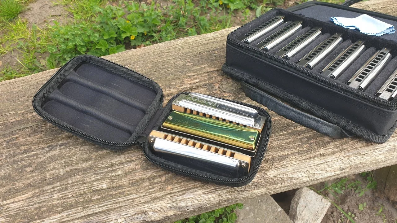 Auf dem 2. sieht man ganz gut das die(Suzuki Manji low) nach unten hin, zum Anfang etwas bauchiger sind(damit die stimmzungen nicht den Deckel berühren beim Bending).