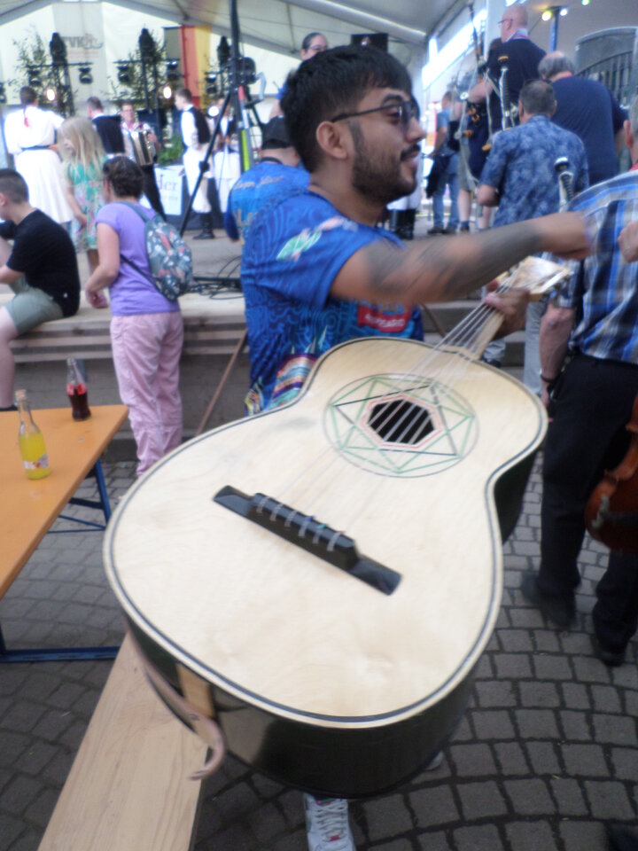 Bewundernswert, wie der mit Guitarron klarkommt. Die Kiste ist sowas von unbequem. Und spielt sich übel.