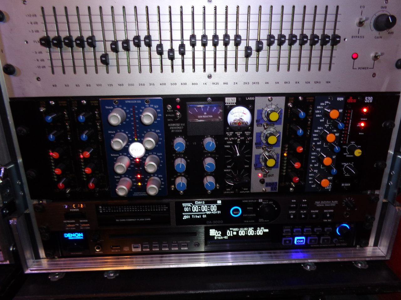 Dieses Rack ist in meinem FoH verbaut (ich mische gelegentlich auch live). Von links nach rechts is da drin: