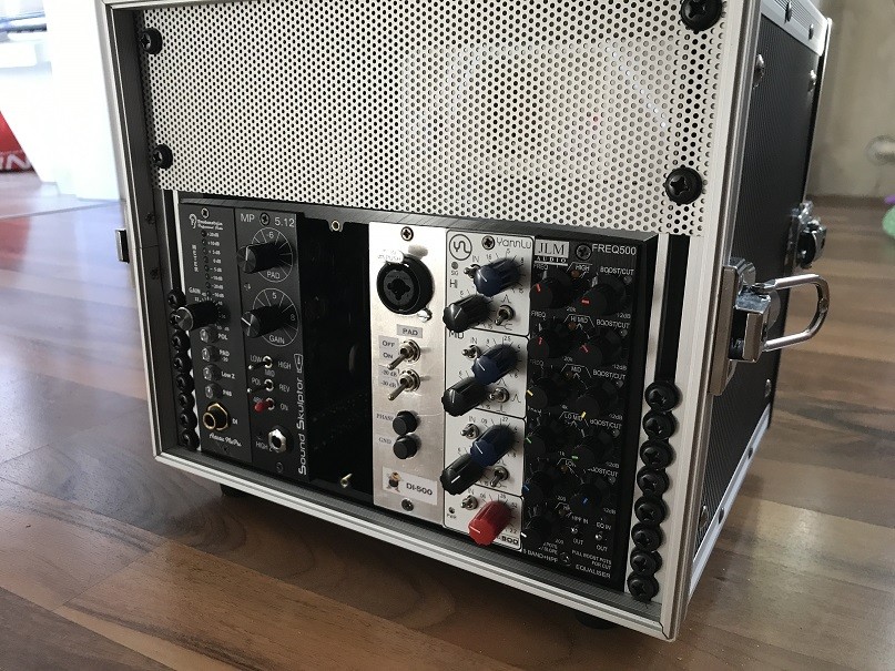 Flyht Pro Eco Rack 9,5" 5U Double Door Case, welches häufig für InEar oder Funk Einheiten gekauft wird. Für den Preis von € 39,- darf man sich natürlich keine Wunder was die professionelle Roadtauglichkeit angeht erwarten, aber für meinen Geschmack ist es derzeit vollkommen ausreichend.