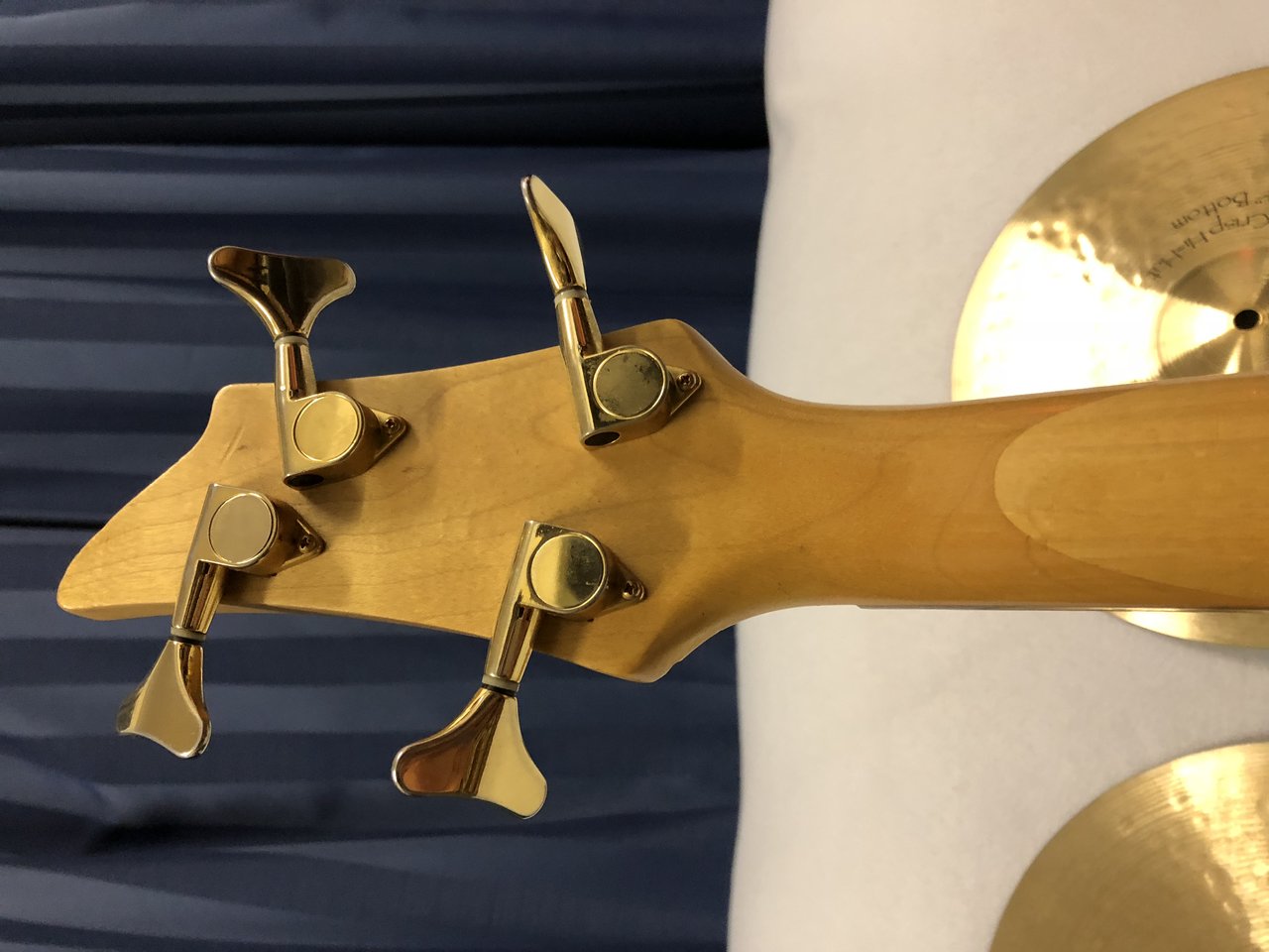 Ich muss ihn nicht unbedingt haben, aber - siehe oben, von wegen „anmachen“. Kopfplatte, Sattel, Hals (schön dick), Bundierung, Korpus sind in Ordnung, ebenso die Hardware und die Elektrik. In der Rückseite des Korpus sind ne gute Handvoll, teils richtig tiefer, Schrammen (stören mich nicht).
