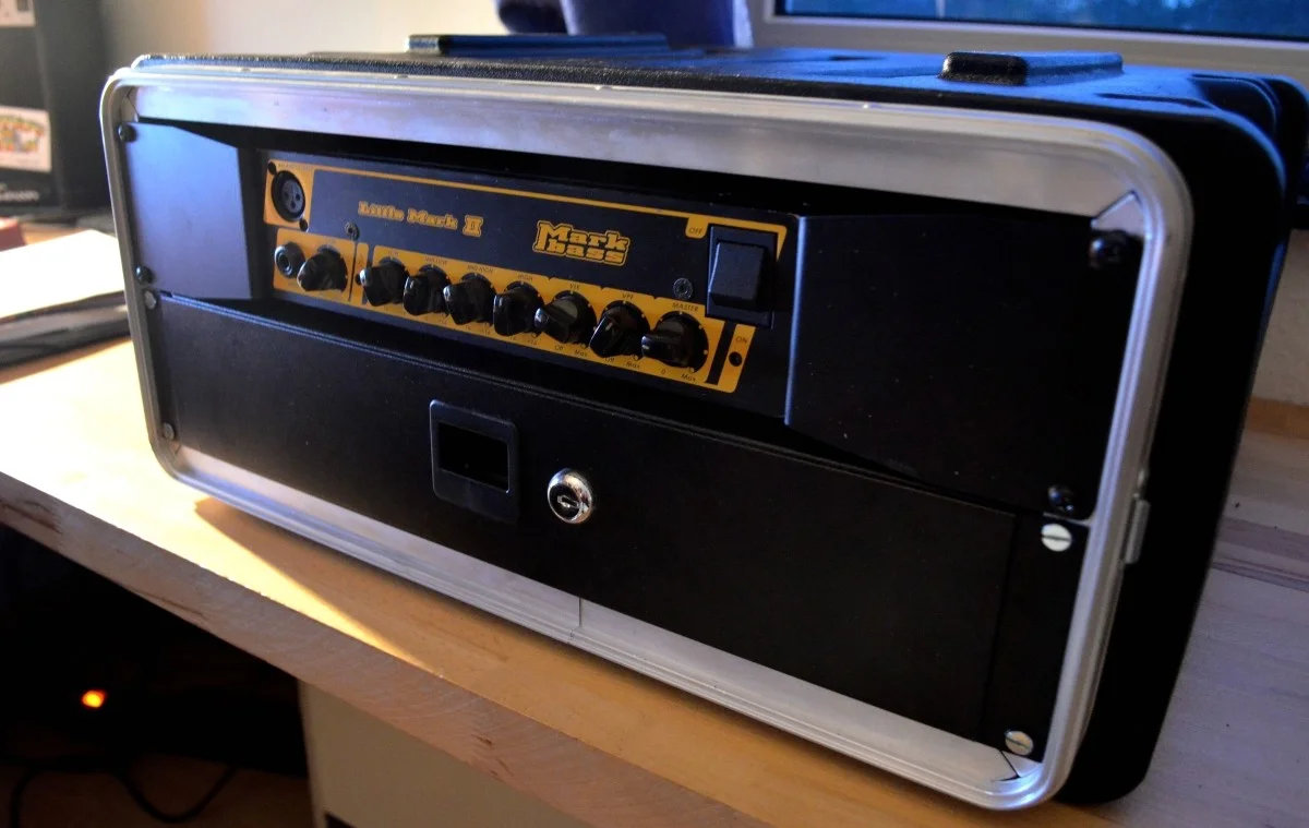 4HE, die oberen zwei nimmt der Amp. Unten kommt keine Schiene rein, sondern nur das Board. Jetzt machst du das Board so gross, dass es die gesamte Fläche des Racks ausfüllt plus die Tiefe der Deckel ausfüllt. Mit beiden Deckeln weg schaut es vorne und hinten noch ein Stück raus (so dass du die Rackdeckel noch montieren kannst). In den Deckeln drin machst du eine Vorrichtung welche das Board fixiert - eine Rille oder etwas ähnliches.