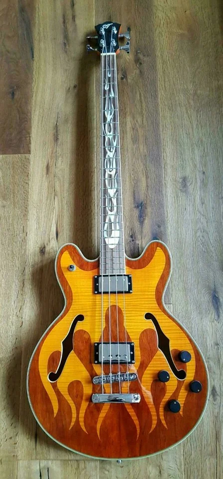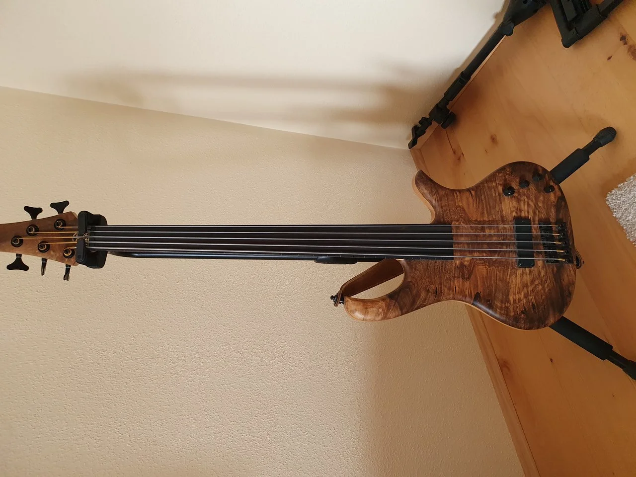 Glückwunsch - sehr nice! Ich hab meinen Jonas Fretless seit etwa 25 Jahren, allerdings "nur" mit einer einfachen Riegelahorn-Decke. Ich mag auch seine Variationen mit Amaranth-Decke, wenn es schön ins lilafarbene geht.Den Jonas fretless gibt's mit diesem Deckenholz auch nicht oft. Ist seit 7 Jahren meiner und die Freude hält immer noch an!
