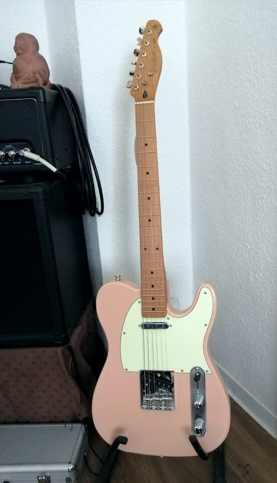 Und meine Lieblingsgitarre ist diese recht unspektakuläre T-Style in shell pink.