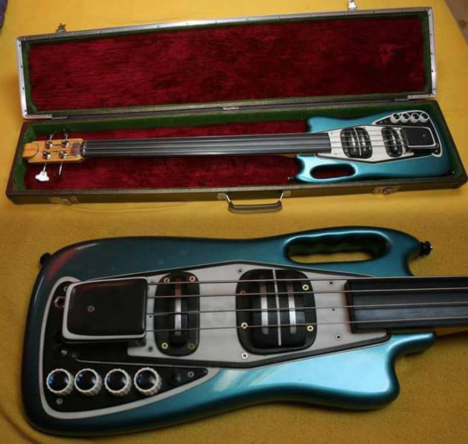 dann passt es ja zum Bassisten der Who, wurde für ihn gebautDas ist mal großartig reduziertes Bassdesign: keine Saiten, darum braucht es auch kein den schönen Hals verdeckendes Griffbrett, die Mechaniken optisch prominent auf der Vorderseite des Headstocks platziert, anstelle komplizierter Elektrik einfach zwei goldene Blechdeckel, und der frontseitig angebrachte Gurtpin verhindert ein Kippen des ganzen Basses nach vorne.