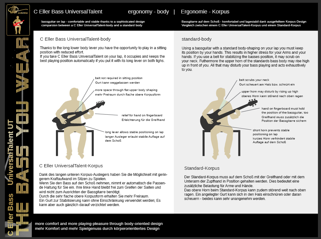 Dafür kann man aber den Bass nicht wie gewohnt anlehnen in Spielpausen, Konzertgitarrenhaltung im Sitzen funktioniert auch nicht und man braucht einen Kleinlaster fürs Flightcase...