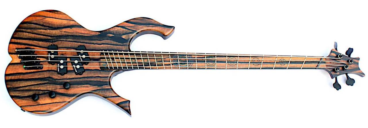 Das ist eigentlich ganz einfach, das Problem beim P mit dem Split ist doch, dass in normaler Anordnung der obere Teil fĂŒr E-und A-Saite noch weiter von der Bridge weg zum Hals versetzt ist, als der untere Teil. Dementsprechend klingt er heftiger, dumpfer, voller und u.U. mumpfiger. Dazu die dickeren DrĂ€hte. Nun in umgekehrter Anordnung greift man die dickeren DrĂ€hte weiter vom Hals, nĂ€her an der Bridge und wirkt dem Effekt entgegen, so dass das Gesamtergebnis ausgewogener ist und die dickeren DrĂ€hte etwas knackiger und nicht so tief und schwer rĂŒberkommen. Beim Doppel-P hat er das jetzt so angeordnet, dass der Hals-PU wenigstens etwas eingedreht ist, so dass die in etwa alle auf einer Höhe liegen. Mit der FĂ€chermensur hat das nichts zu tun. Es gab diese Anordnung auch schon an BĂ€ssen, die gar keine fanned frets haben. Klanglich spielt sich das aber so ab wie beschrieben.Im grossen und ganzen gefĂ€llt mir der sogar sehr gut, besonders das Holz. Die Kleinigkeiten die ich anders haben möchte sind unwichtig.