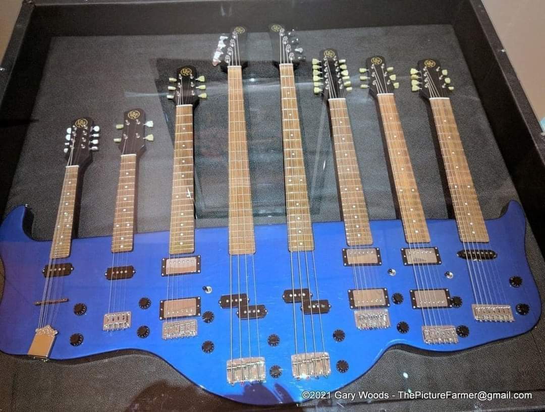 Spätestens ab Gitarre 4 von oben brauchste einen Blindenhund ...Frag doch mal Rick Nielsen von Cheap Trick…