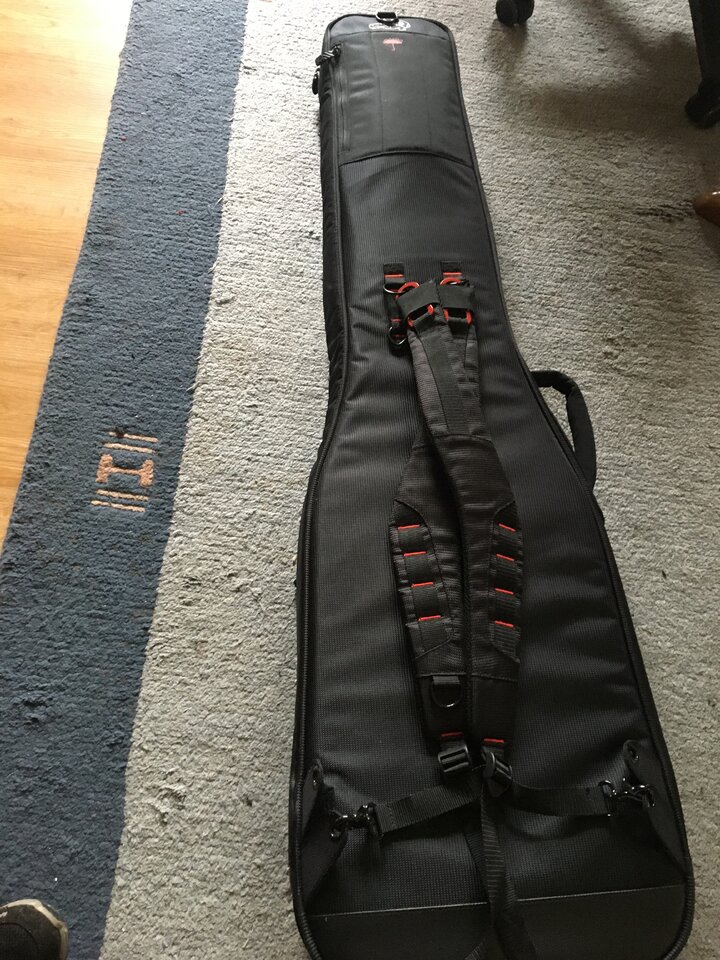 Edith sagt nach nochmaligem Check der Bilder, dass die Bilder vom Link vielleicht das dünnere Gigbag zeigen. Bei dem was ich habe sind die Gurte & Co. auch stärker gepolstert und es ist nicht so "wellig"