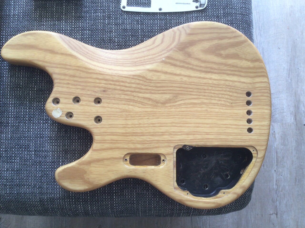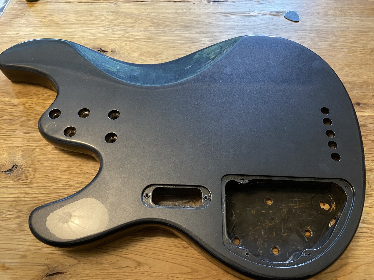 Genau wie mein ATK. Vorarbeiten habe ich mit einem feinen Schleifschwamm erledigt, das hat sehr gut funktioniert und ist schön gleichmäßig glatt geworden.Der aktuelle Bass ist "Natur" mit einem Klarlack übersehen. Es ist ein japanischer Jazzbass. Was genau gemacht werden muss, kann ich nicht sagen, weil ich keine Ahnung habe. Der bekommt jedenfalls die Farbe Pewter.