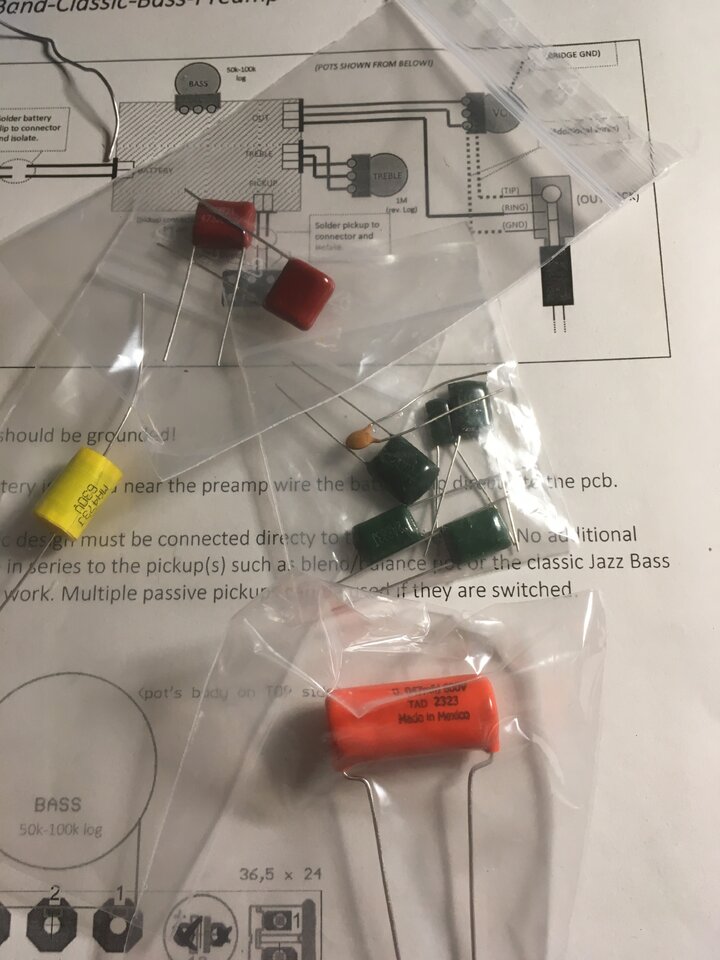 Da ich die potis frei anordnen wollte habe ich ja alles an Kabel gelötet. Sonst wäre bass in der Mitte festgelegt gewesen, da die anderen Fächer zu klein für die Platine sind. Die Platine selbst habe ich an den Ecken abgerundet und isoliert und diese liegt flach im Fach. Wegen der Switches hätte ich die sowieso nicht an den poti bekommen.
