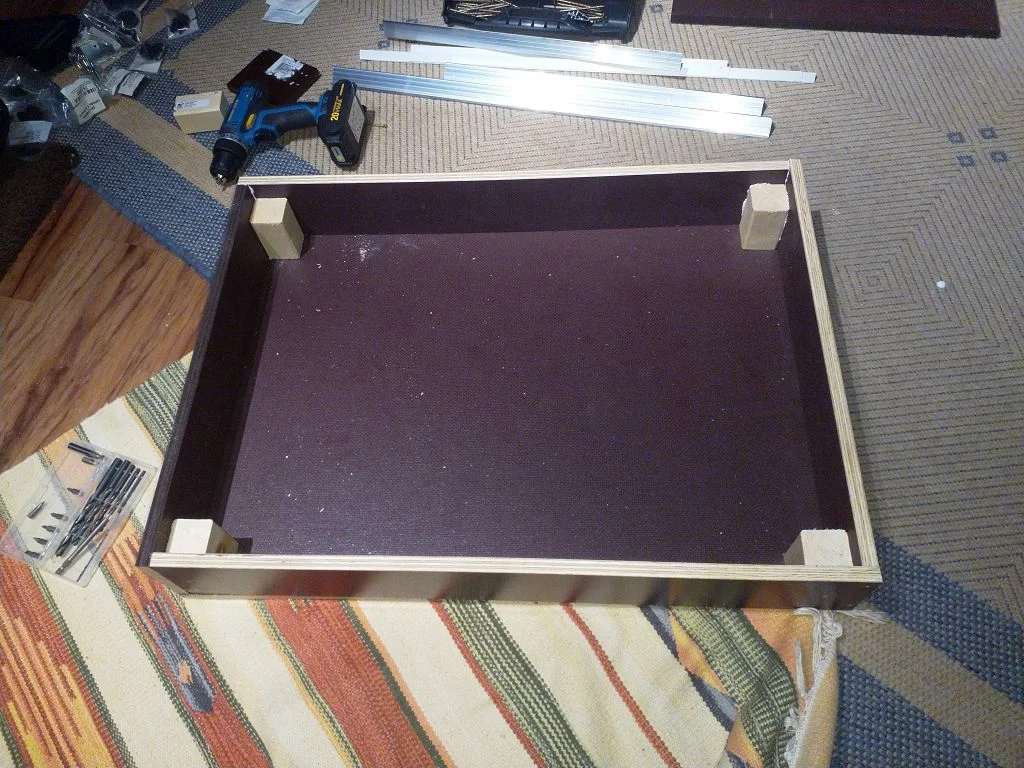 Als nächstes habe ich mir die Grundkonstruktion mal zusammengeklebt und mit Spax schrauben alles fixiert.