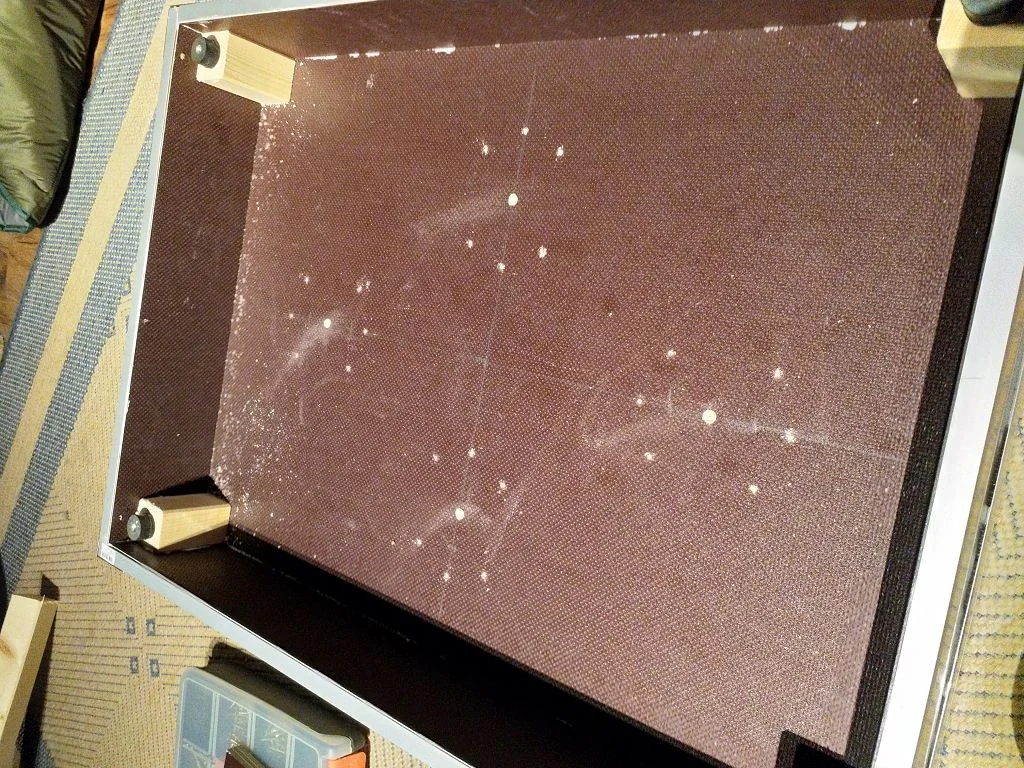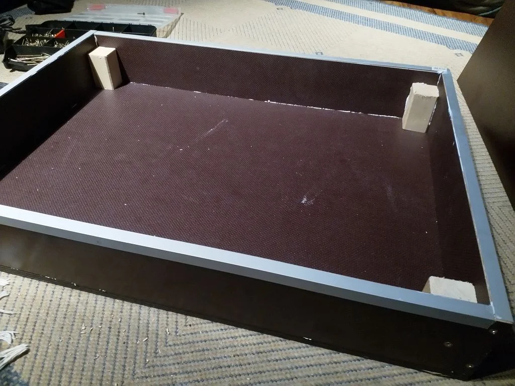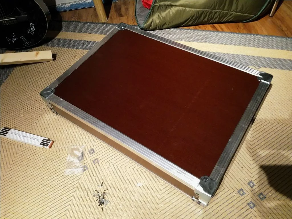 Basis ist eine Siebdruckplatte vom OBI in 1,5cm Stärke und 83cm x 125cm Fläche für nen Zwanziger.