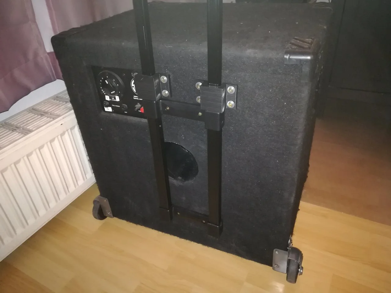 Bei meinen 2, 410er Boxen hab ich Eckrollen und Trolleygriffe installiert.