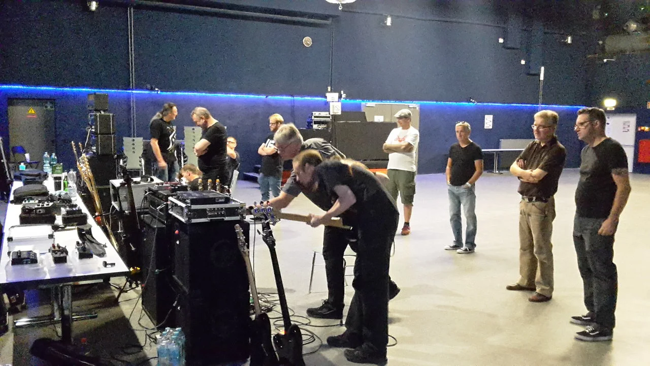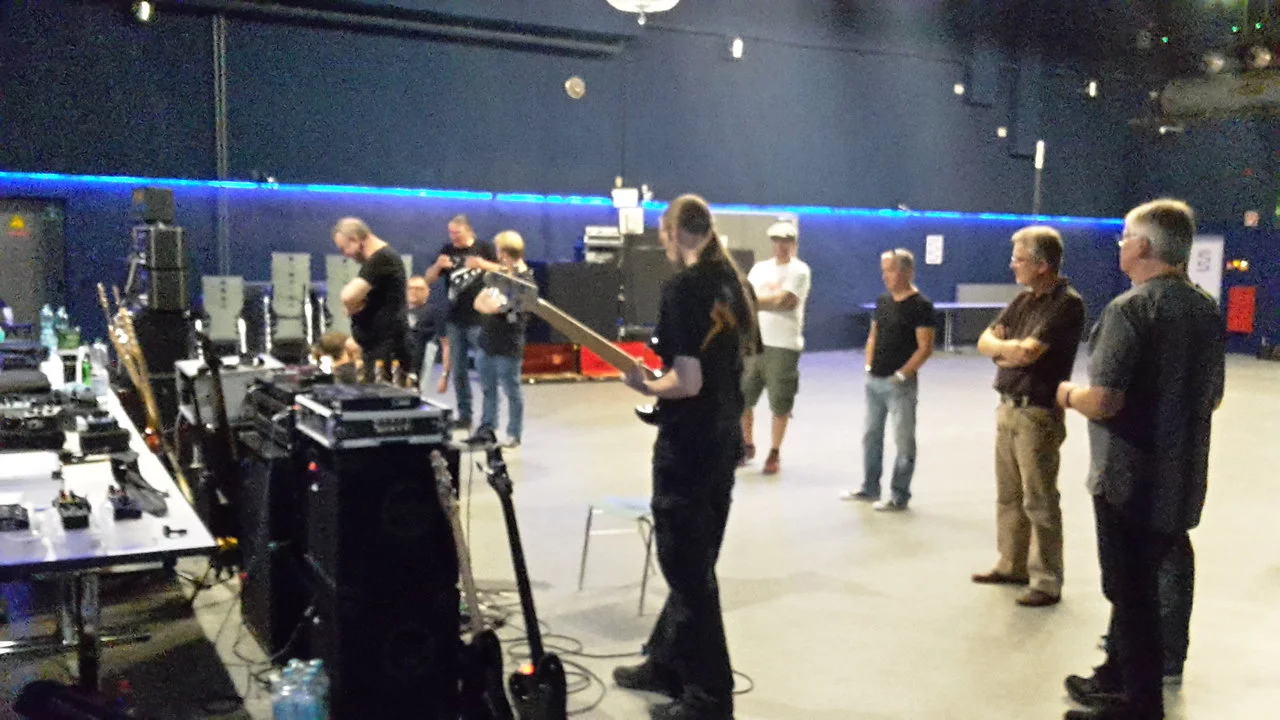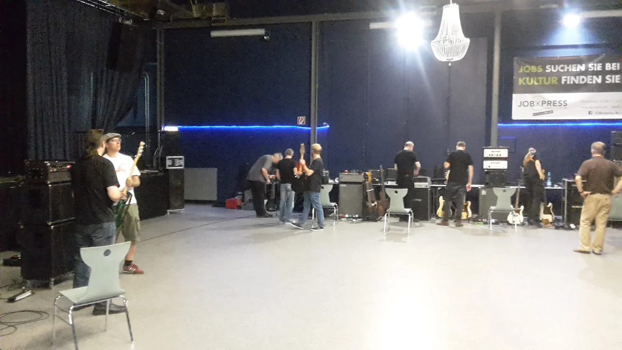 Ich bin der kurzbehoste Lange mit dem Fender T Shirt und der Brille.