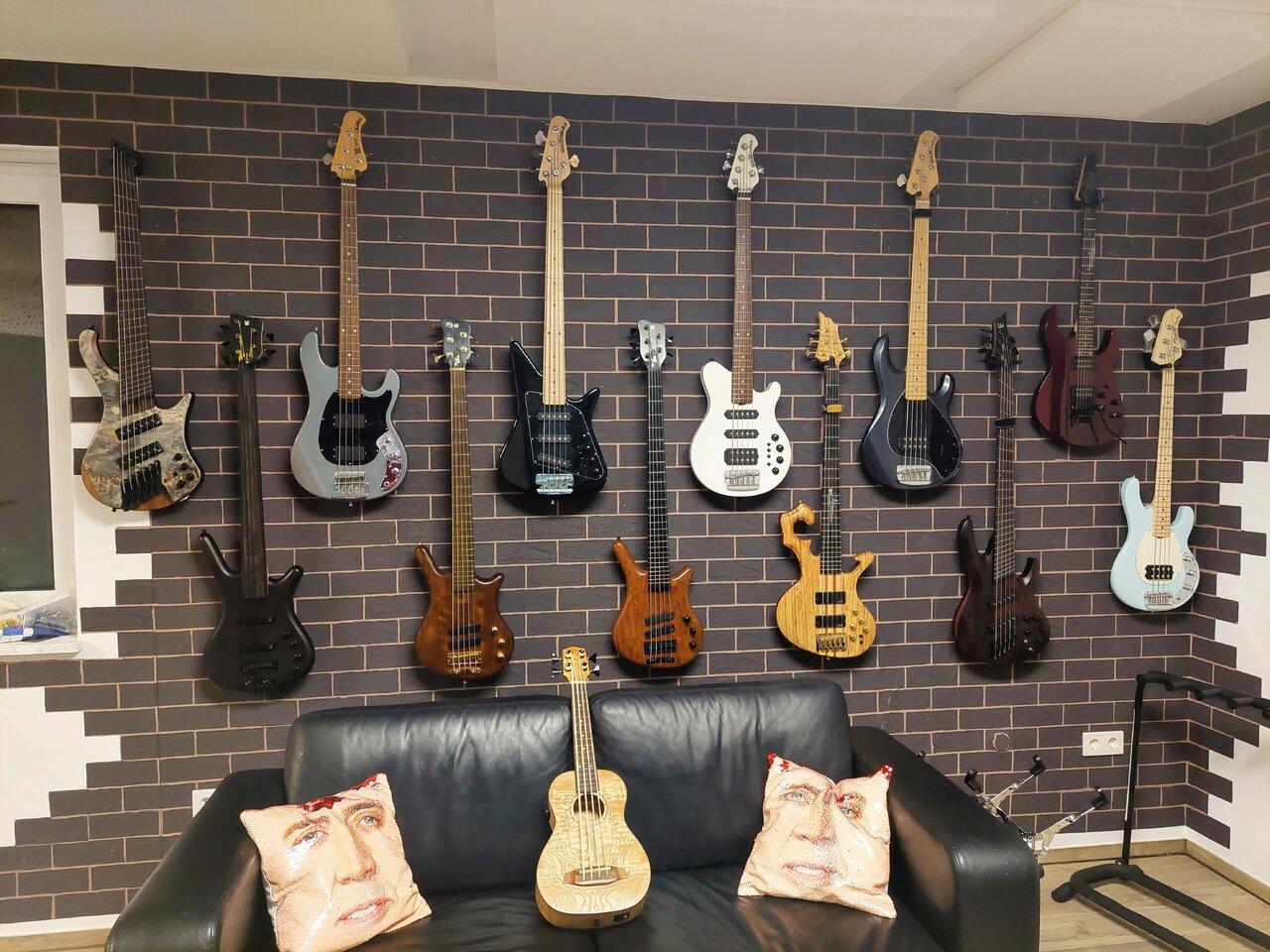 Ibanez EHB1506, MusicMan Sabre Classic (BJ2013), MusicMan BigAl5, MusicMan Reflex 5 HSS (bis dahin ggf. verkauft), MusicMan Stingray 5H, Line6 Variax JTV-89F