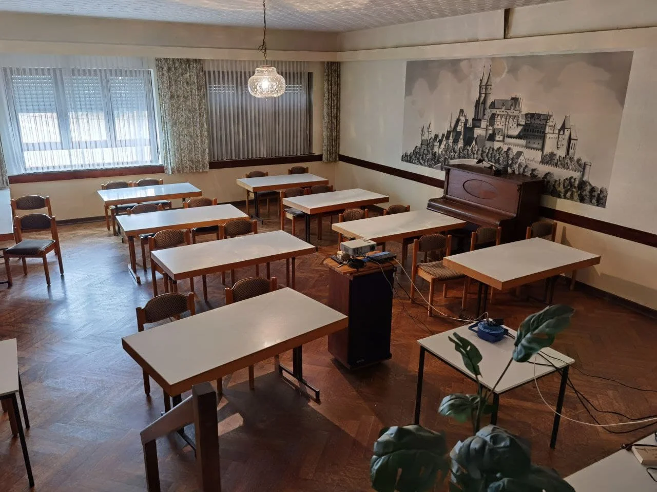 - wir haben einen kleinen und einen großen Raum UND eine angeschlossene Gastronomie, wo es dann zu vernünftig niedrigen Preisen Getränke geben wird (Bier, Limo, Wasser bla etc. )