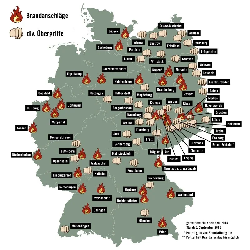 - die Grafik? Naja - wie soll ich das jetzt verstehen? Aufnahmestop, um Brandstiftung und Gewalt gegen Migranten zu verhindern? Cool! Lass uns doch gleich auch das Christentum abschaffen, vielleicht hören die doofen Moslems dann endlich mit ihren Terrorakten auf...!