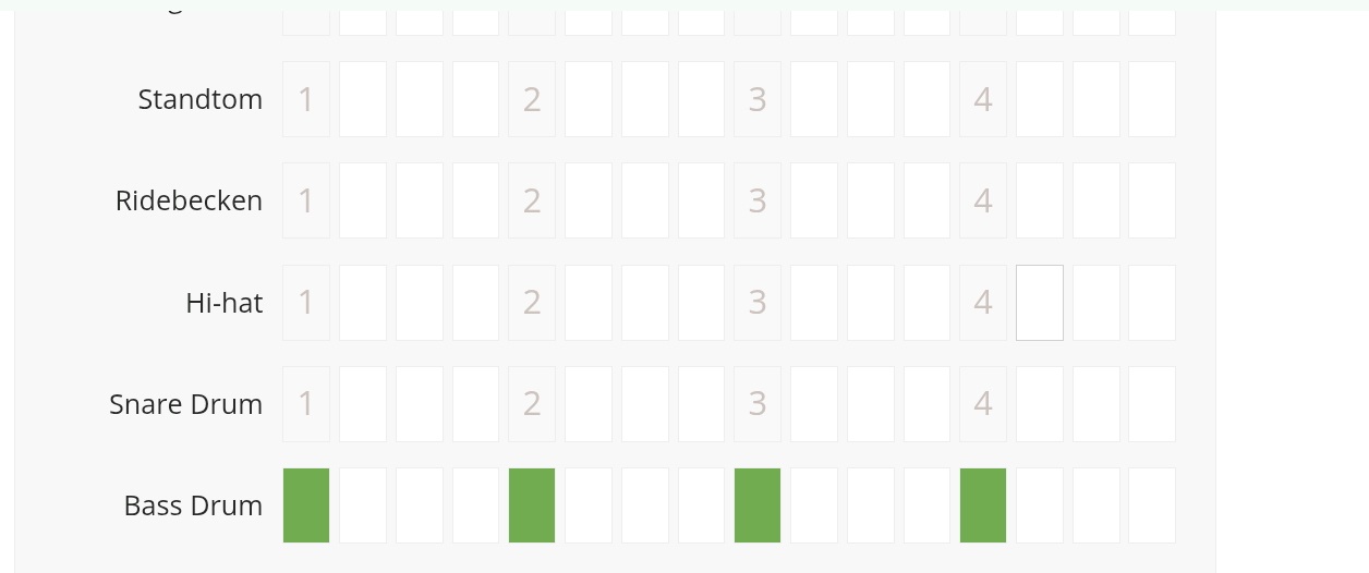 Ein 16tel Raster hat einen weiteren Vorteil. Es lässt sich besser auf einen Drum Computer übertragen, um sich den Rhythmus zu erschließen.