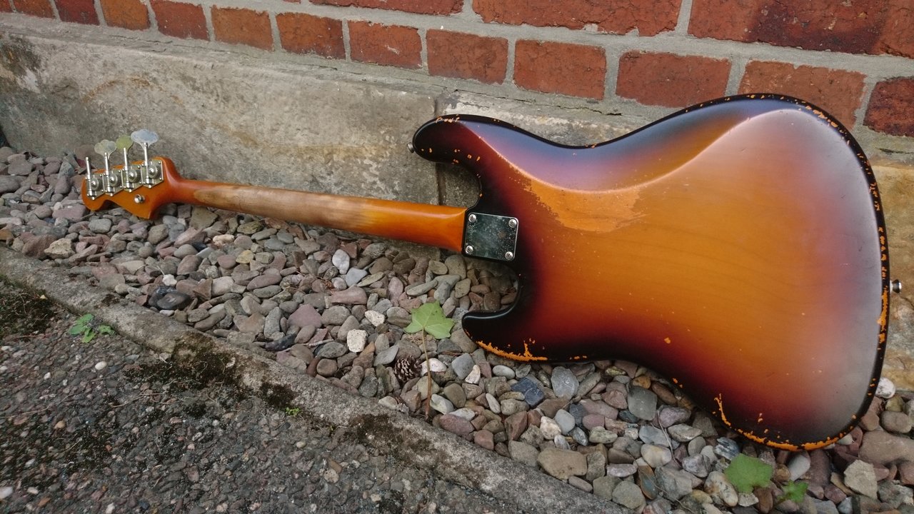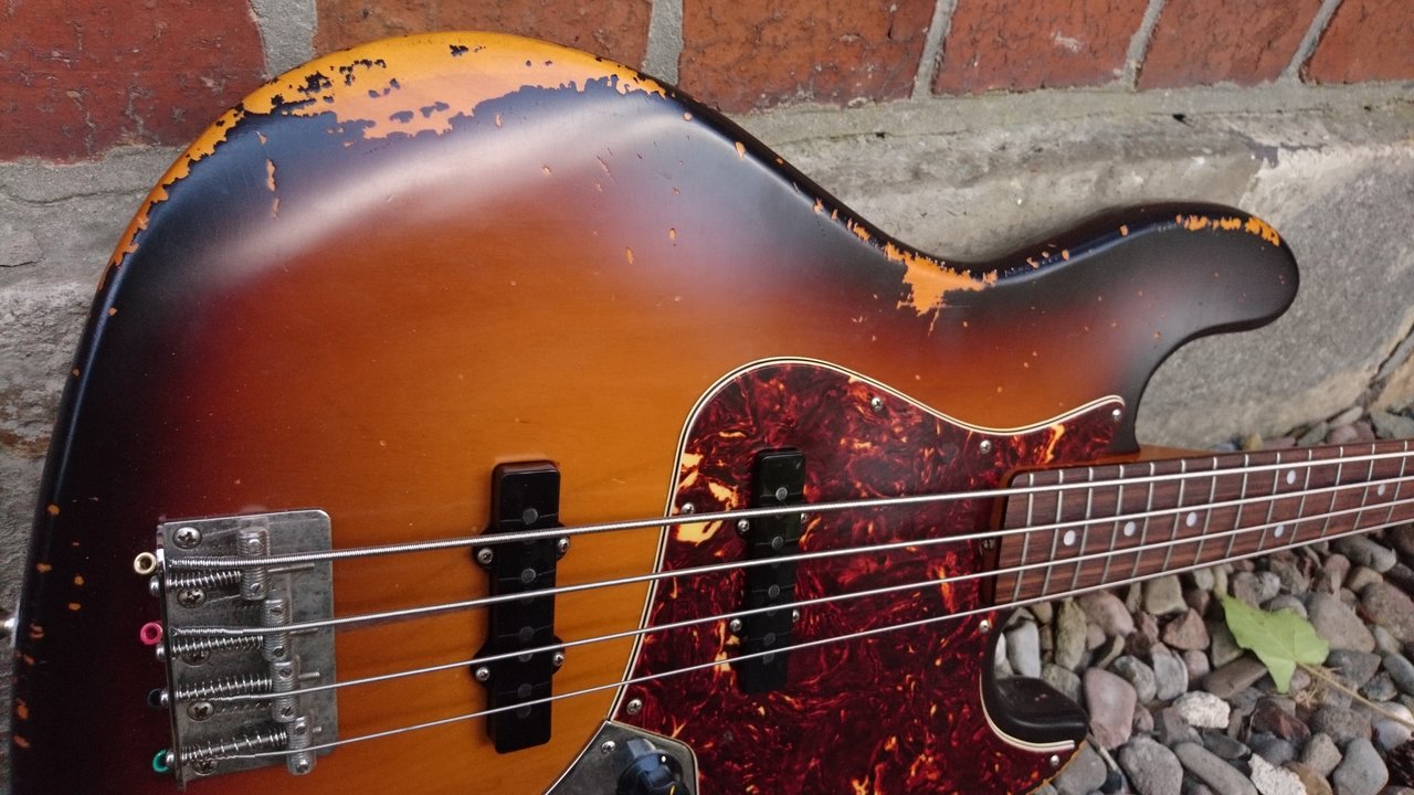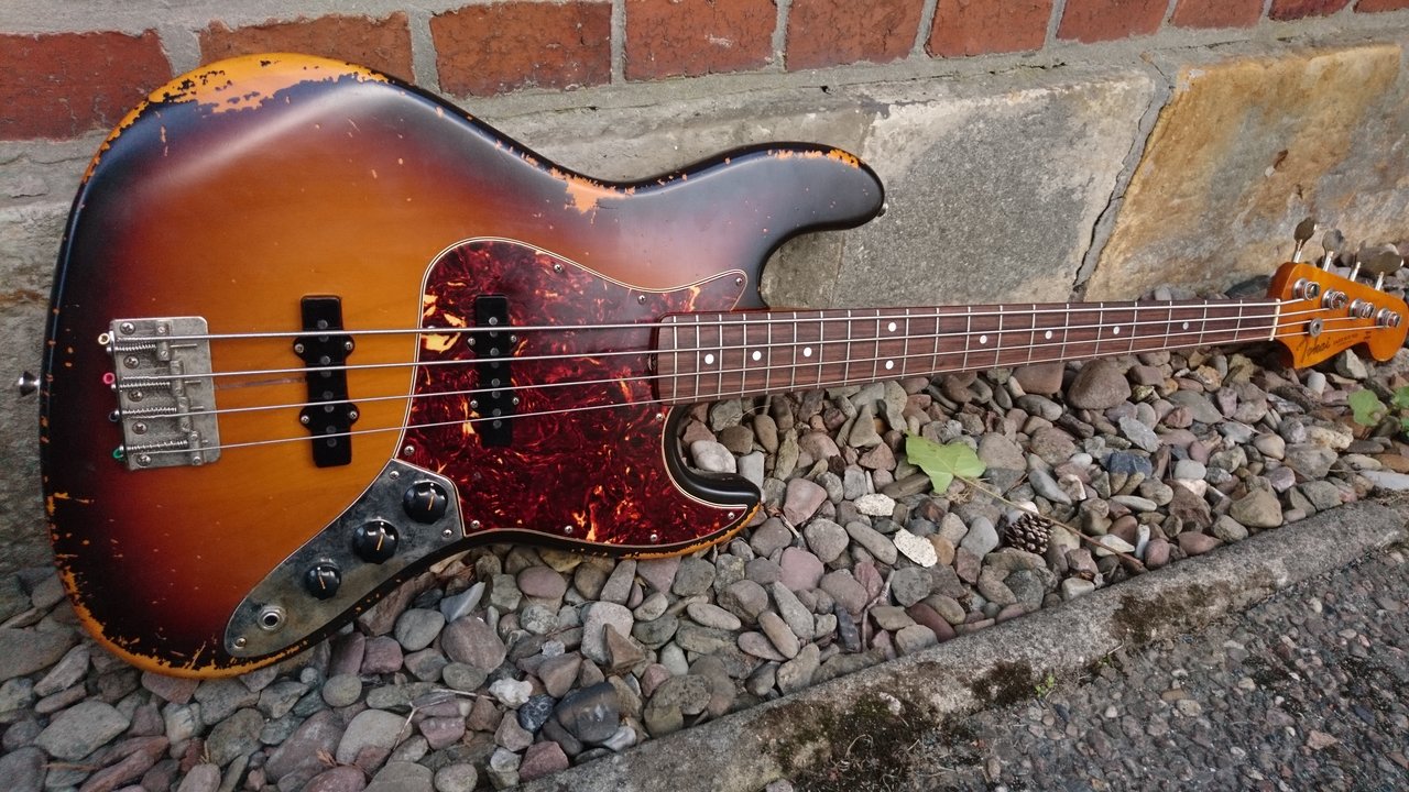 Ich werde zum Orangen-Treffen einen 65er Jazz Bass mitbringen, der vor 2 Tagen bei mir einziehen durfte.Ja, das habe ich auch schon ein paar mal ernsthaft überlegt, wobei mein erster Bass, der nichts Wert ist, bleibt. Es wäre dann nur das Problem den richtigen Mitt 60s J in Sunburst zu finden und zur rechten Zeit am rechten Ort zu sein.