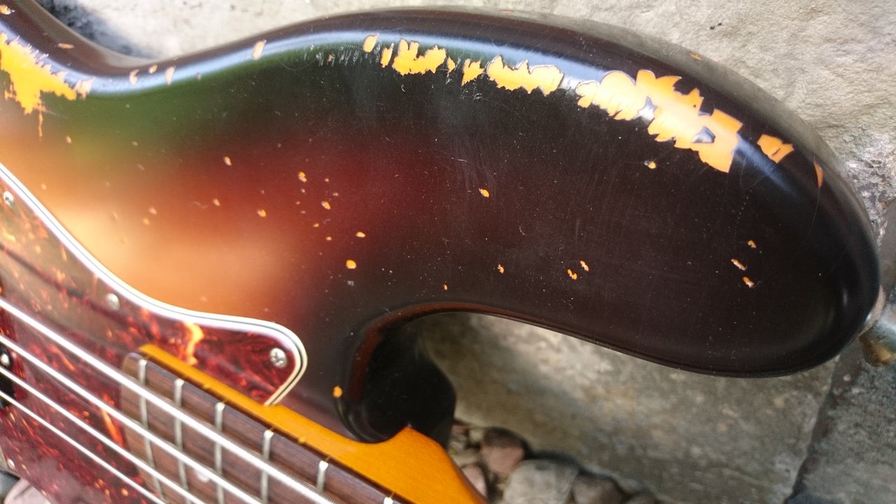 Die Halsrückseite ist auch das, was mir am wenigsten gefällt, aber so ist das. .. der Lackierer empfindet sich als Künstler und ich hab schon viel intervenerieren müssen-und nachgearbeitet - weil es sonst nicht noch extremer geworden, gewesen wäre. Für mich ist auch der Lack am Hals insgesamt zu dunkel..Schöner Jazzbass mit schönem Sunburst. Die Halsrückseite siehst zum Glück nur Du.![]()