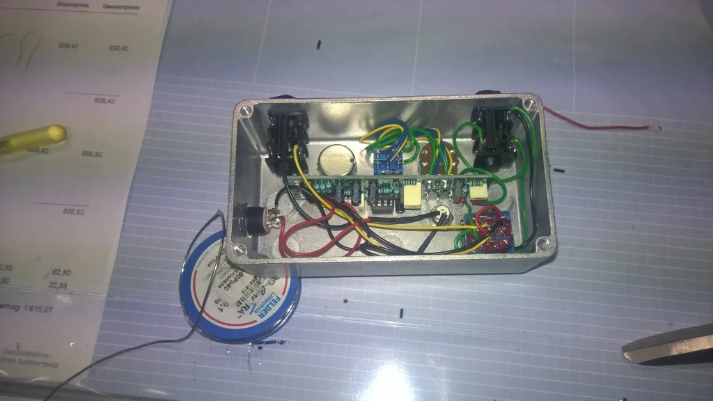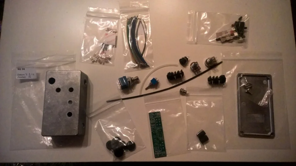 Habe den Bausatz mit vorgebohrtem Gehäuse bestellt. Dazu noch Potiknöpfe und andere Füße.