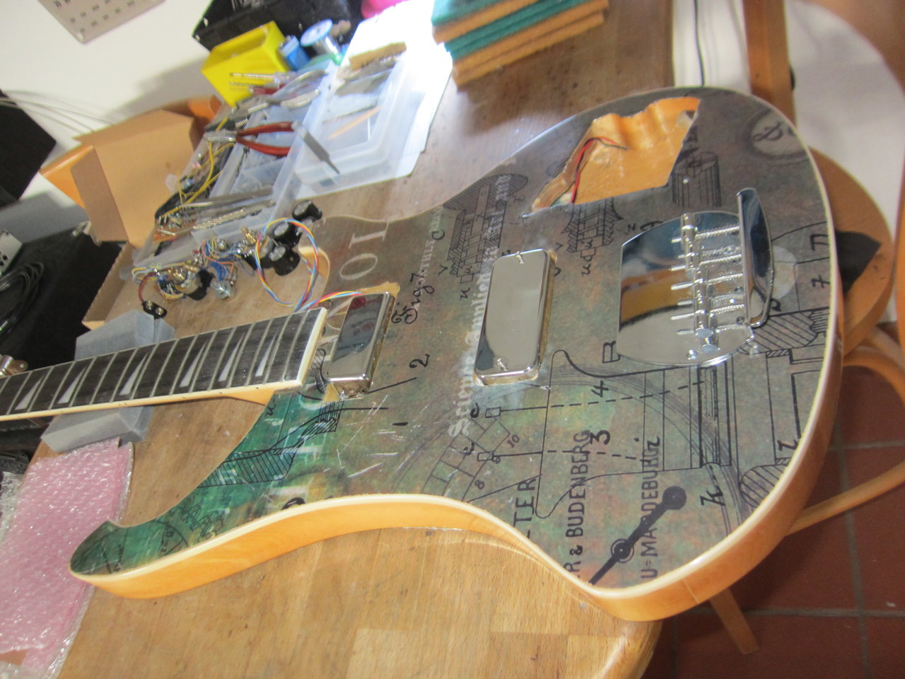 Da ist es sehr praktisch, dass der Rockti... äh Ricarda von Zickenbacker einen Slab Body hat. Sowas habe ich (noch) nicht in meiner Sammlung und fällt daher als Gestaltungmöglichkeit wohl flach