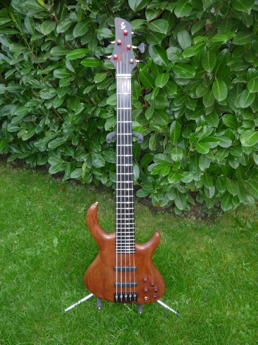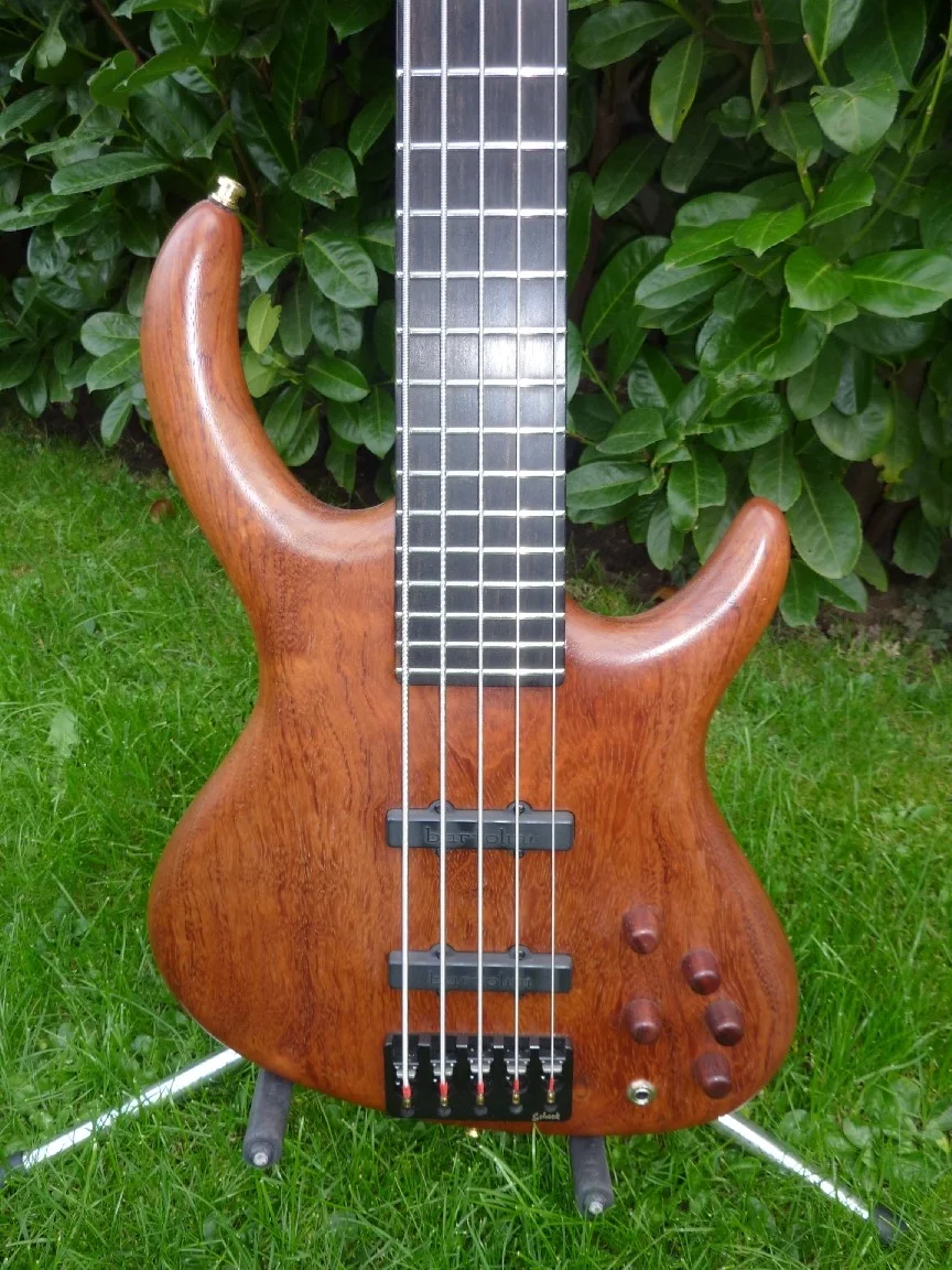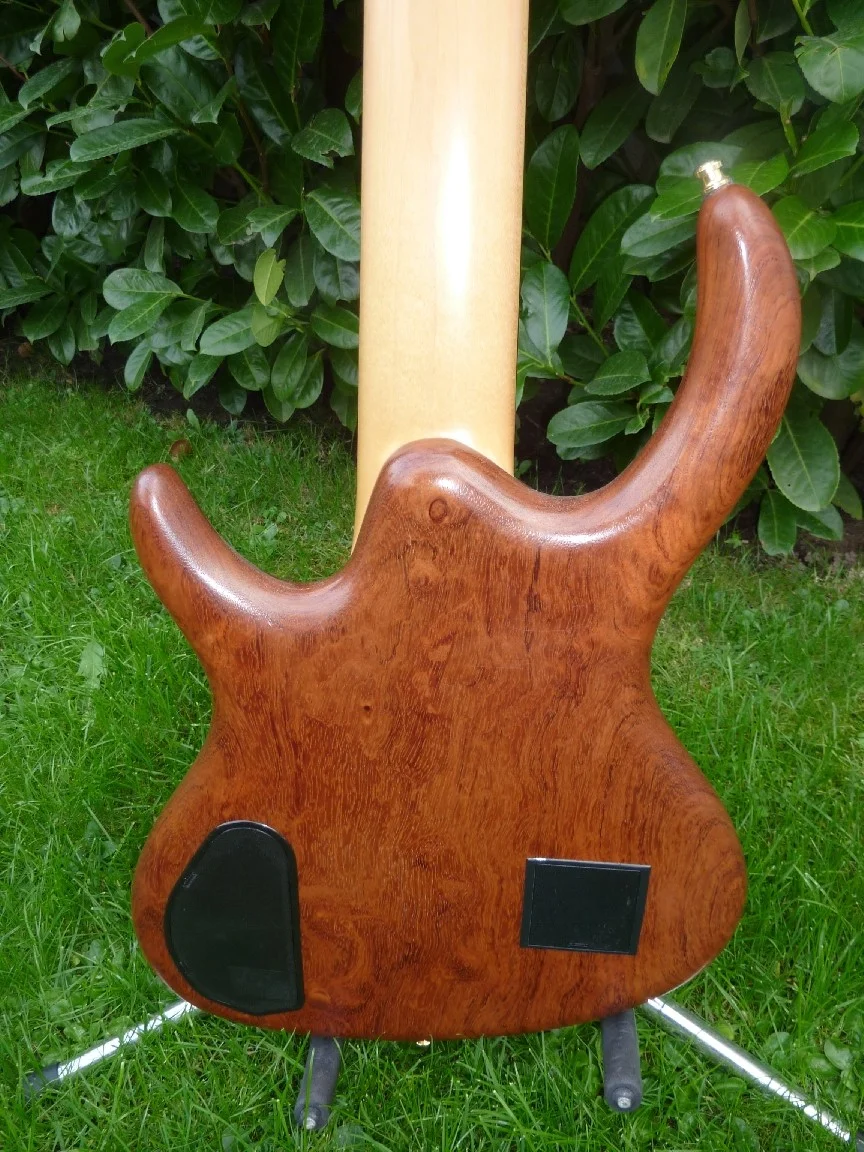 Der Korpus ist aus einem schönen Teil Bubinga , Ahornhals mit Ebenholzgriffbrett, Bundstäbchen sind in gutem Zustand neue Schallermechaniken, Bartolini Noisless , Glockenklang Preamp, ETS Bridge.
