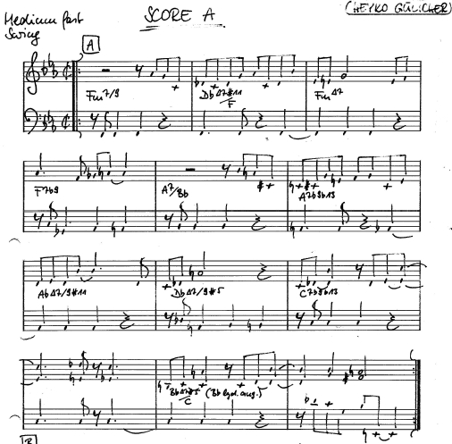 Wow - A7/Bb als 4. Stufe im Moll-Blues? Bbmj7/#11/13?...heftig, heftig....Mal andersrum - hier eine alte Nummer von mir, bei der zwar die Form (und im Großen und Ganzen auch das I-IV-V-Schema) stimmt, die Akkorde aber doch einigermaßen verfremdet wurden: