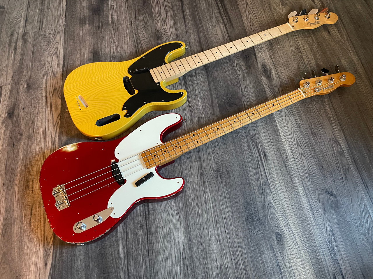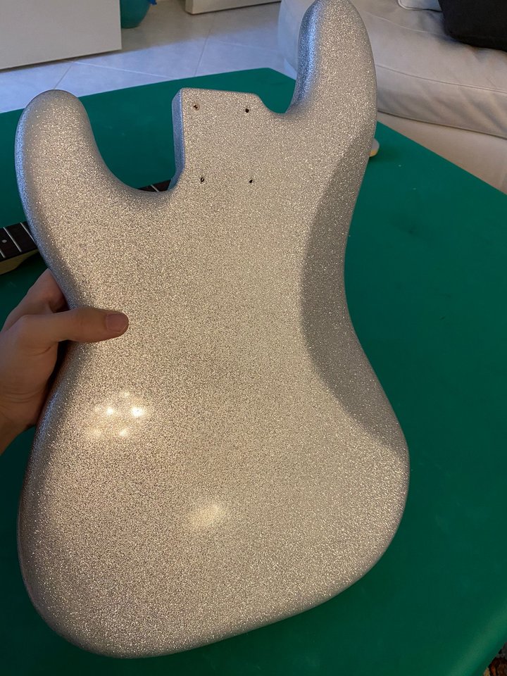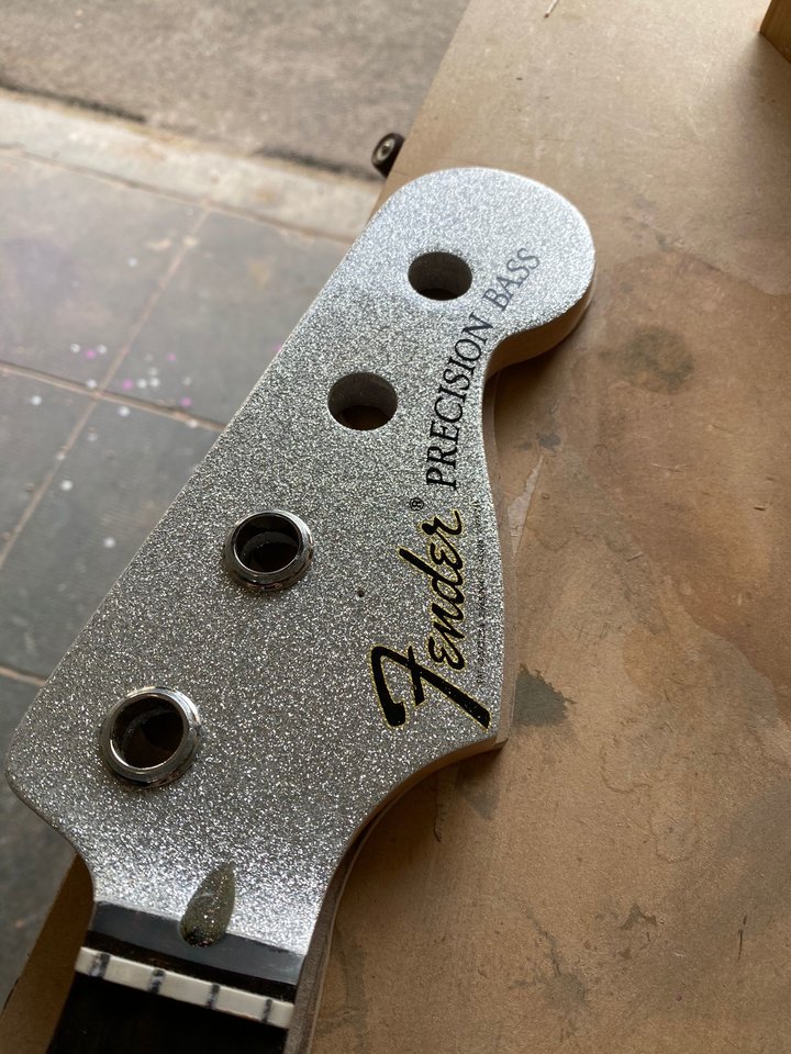 Hier kann man nochmal glaub ich deutlich den Unterschied sehen. Der Fender Mexico Hals ist nun auf dem Body von Tonholz. Habe das gleich auch genutzt, um auf den neuen Hals die Fender pure Vintage Tuner zu bauen (der Mex-Hals hat die Gotoh FB30 drauf)
