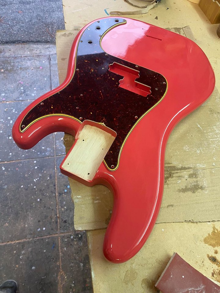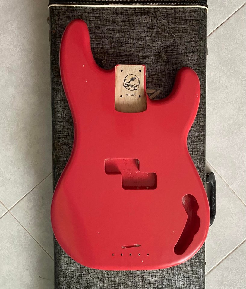 Ich habe 4 Verschiedene Hersteller gebraucht bis ich dartfords gefunden habe und das war das einzige, was so rosa wird. Du kannst den von Docwood dann mit meinem/deinem Jazz Bass relic Body vergleichen, der ist meine ich weiß grundiert und dann mit dartfords Fiesta Red lackiert..Ja, das den leichten Rosa-Stich a la Pino wollte ich auch haben. Daher hat Davide gesagt, dass er den Base Coat in Desert Sand machen wird ... So sollte der Farbton entsprechend rauskommen.