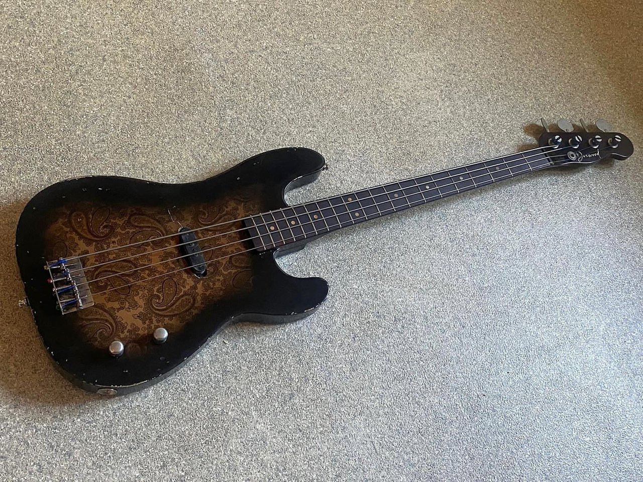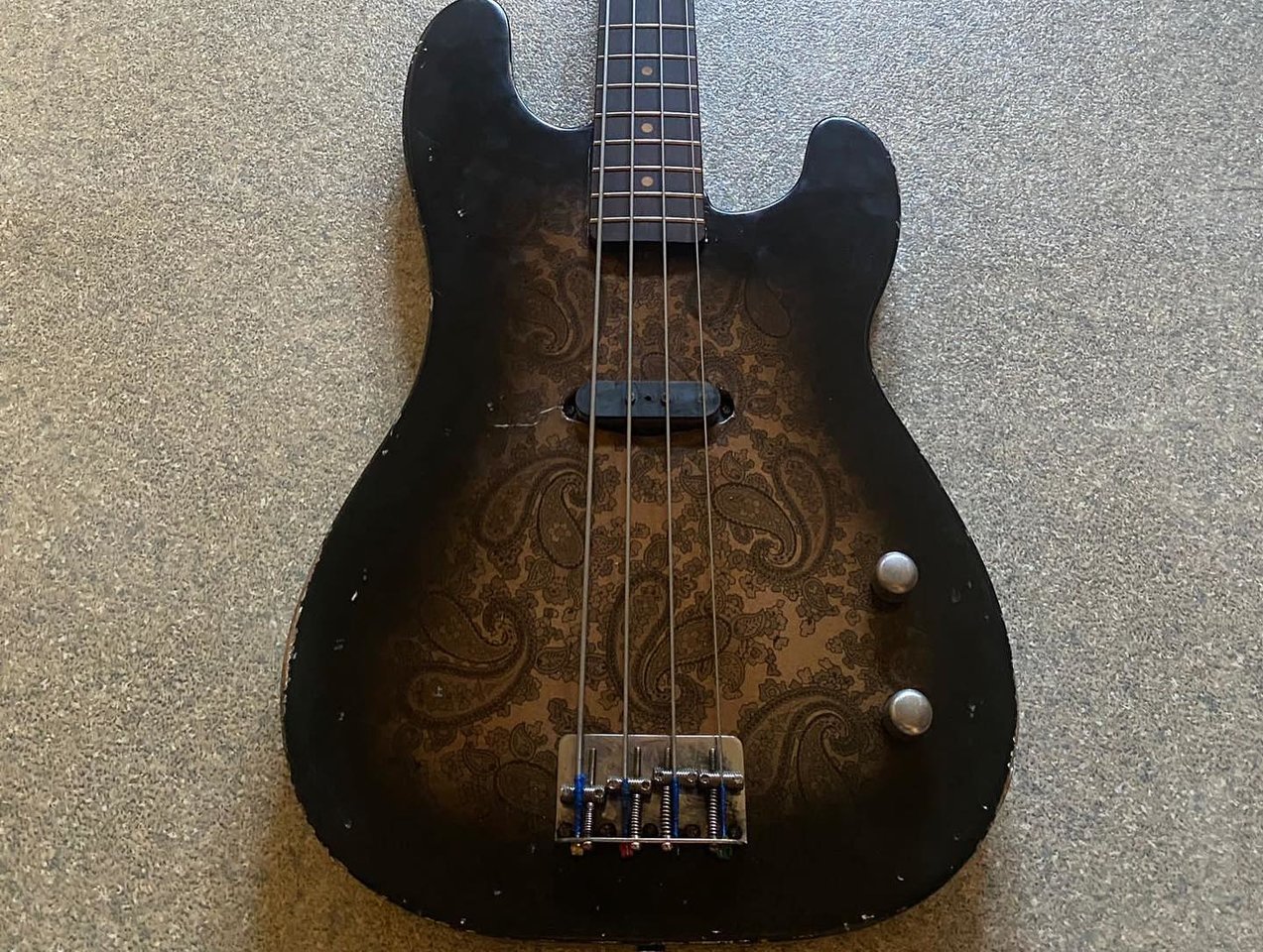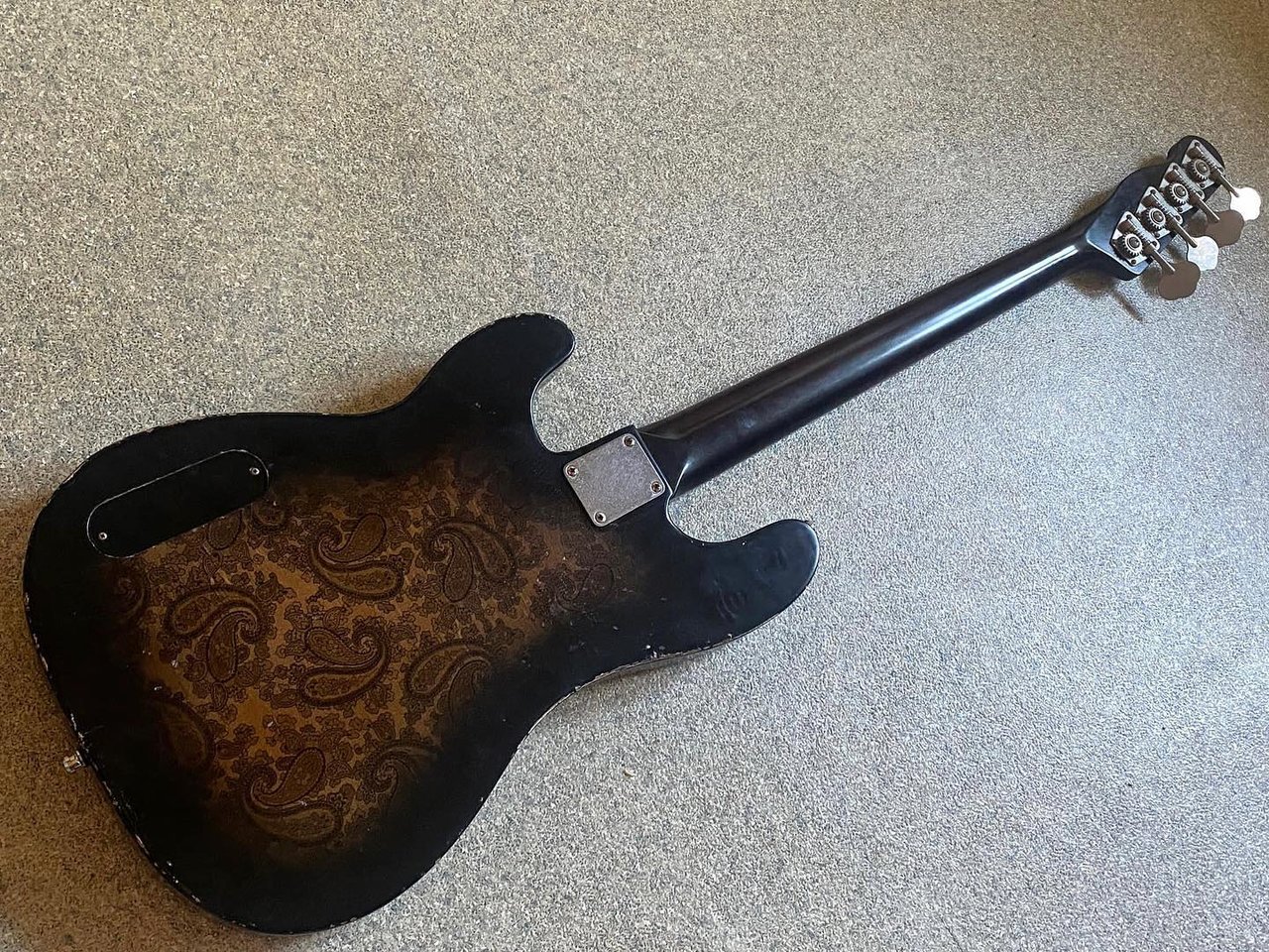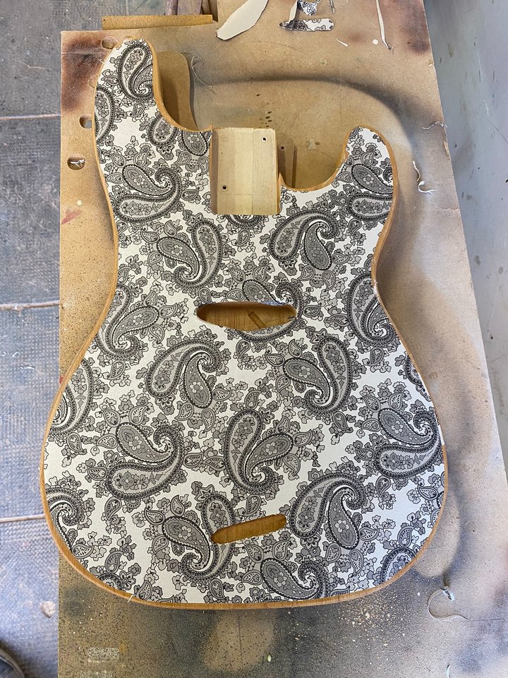 Kein Pickguard, Elektronik-Fach von hinten - ich wollte das Paisley so sehr wirken lassen wir es nur geht.