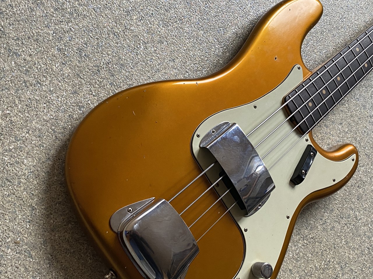 Bestückt hab ich ihn mit einem 63 AM Original neck, etwas gealtert, Vintage Reverse Mechaniken geaged, das Spaghetti Logo gegen ein 65 Transition Logo getauscht (Firemist kam erst 1965 raus, also passten auch die Clay Dots noch), die Cover nur ganz leicht gealtert, ebenso das PG. Als PU hab ich einen Antiquity II verbaut. Der Kleine klingt so gut wie er aussieht und ich finde, wenn man die Vorlage in Bezug auf die Farbe anschaut, dann hat er wirklich ganze Arbeit geleistet:
