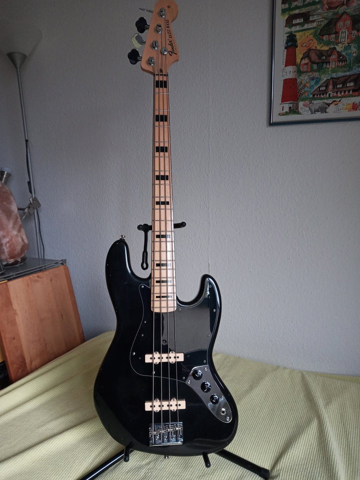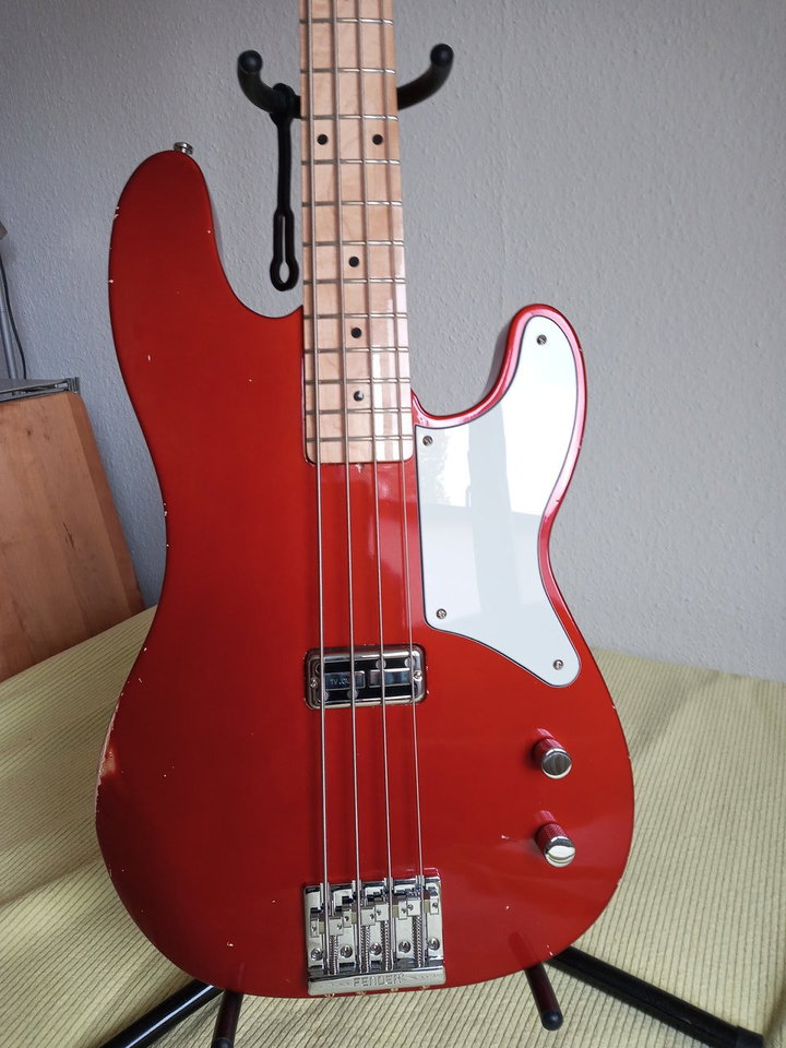 Ich mag die Fender Cabanossi-Bässe sehr. Täuscht das auf dem Bild? Ich könnte schwören, dass der Hals leicht nach links gekippt ist, also nicht 100% mittig sitzt. Kann natürlich auch die Kamera-Optik sein, das kann ich nicht sagen.