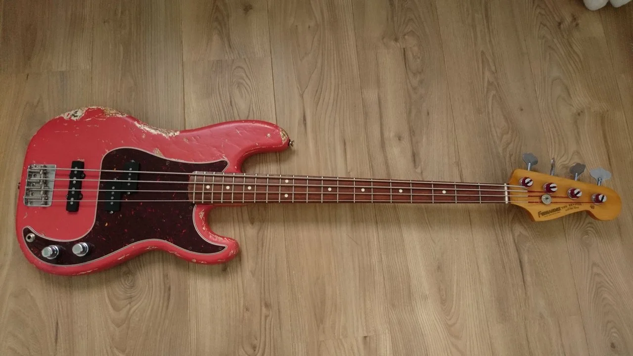 Komplett Fender. American Original 60s Neck, Pure Vintage 63 PU, Reverse Tuner, Rillen-Bridge. Quasi der CS-Pino als Custom Build. Die Hardware habe ich selber geaged. (Und dabei vielleicht eine Brücke zerstört.