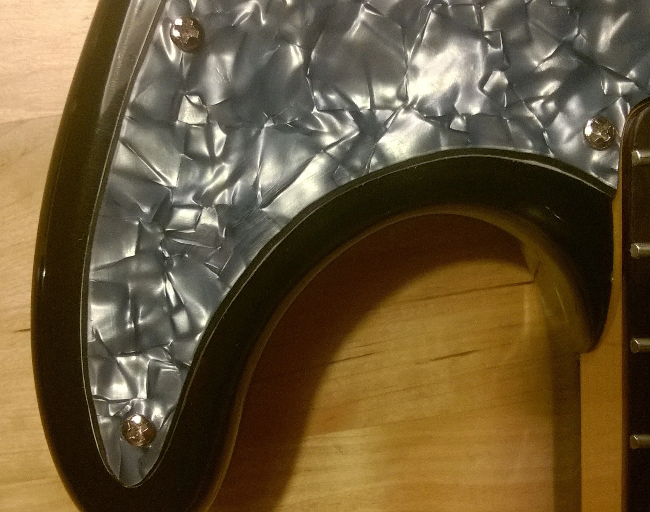 Mein letztes Pickguard habe ich ebenfalls mit 'ner Laubsäge ausgesägt. Allerdings habe ich den Umriss mit 'ner Messerspitze in die Folie geritzt, da es bei 'nem Strich mit 'nem Edding nicht besonders genau wurde, da ich die exakte Linie nicht richtig treffen konnte. Die Kanten wurden dann mit 'ner Feile und zum Abschluss mit feinem Schleifpapier abgerundet.geht gut. mit Laubsäge. pickguard Rohlinge haben in der Regel eine durchsichtige Schutzfolie draufkleben. Darauf anzeichnen, aussägen und die Kanten mit superfeinem Schleippapier nacharbeiten.