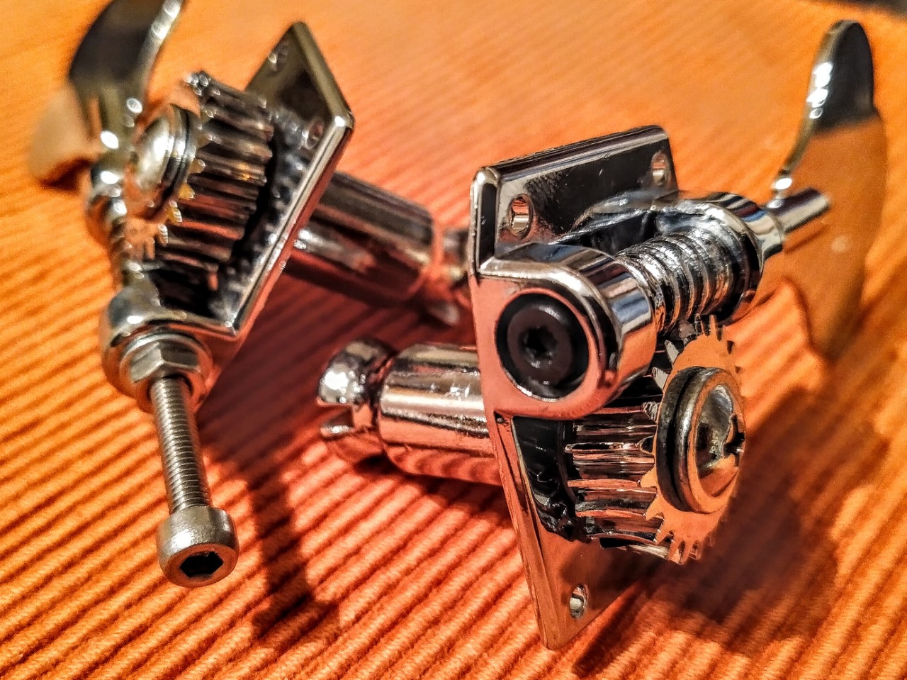 Sind das ggfs. Sandberg Tuner - meine haben unten auch eine Schraube für den Drehwiderstand der Achse. Hab bei Sandberg kostenlos Ersatz bekommen, als mir eine Schraube und ein Gleitscheibe verloren gegangen ist.Bei den Mechaniken fiel mir auf, dass 2 Halteschrauben fehlen, hat irgendjemand ne Idee, woher man diese herbekommt?
