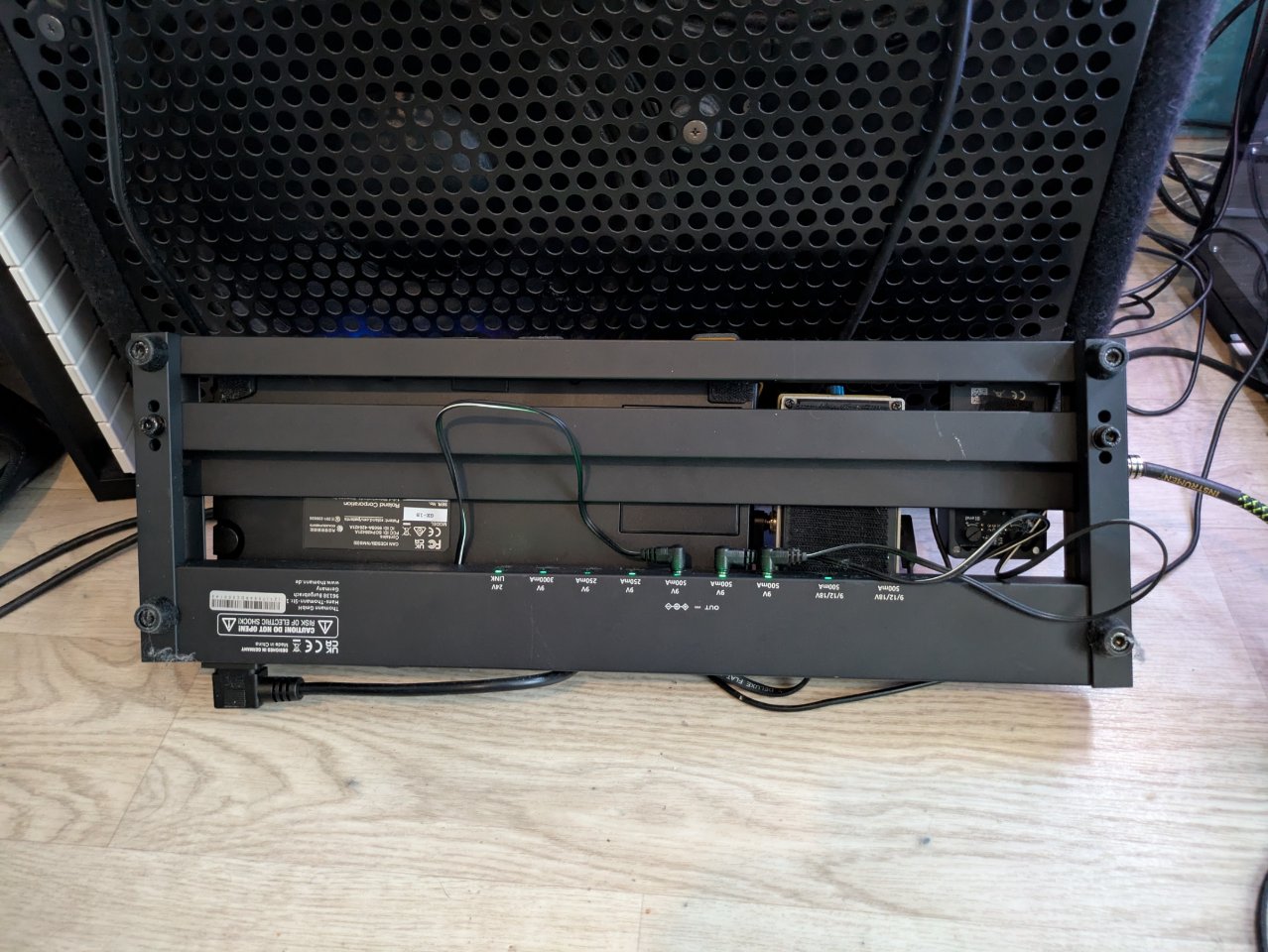 Als Ablöse für mein Boss GT-1B passt es klar auf das vorhandene Board, einem Harley Benton mit integriertem Netzteil.