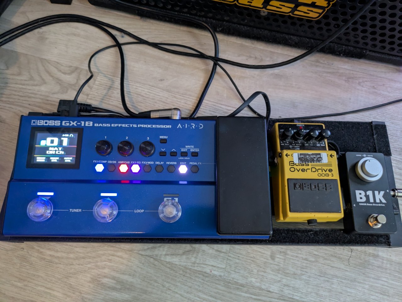 Superflat Amp, "Orange" Kompressor, weil es ein Boss ist darf ein Chorus nicht fehlen.