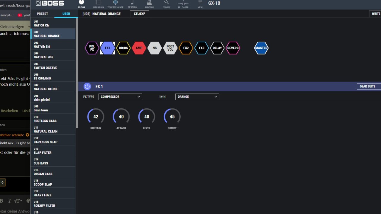 Alle Einstellungen kann man auch am PC,Mac oder Android mit den Boss Tone Studio vornehmen. Dort gibt es auch ein paar Rhythmusspuren und zum Üben können Songs geladen werden. Sektionen eines Songs wiederholen oder den Speed verstellen.