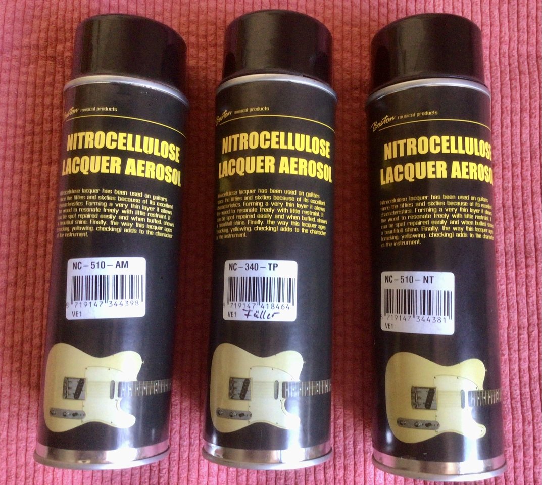 zum Verkauf stehen diesmal drei Dosen Nitrolack von Boston. Neu und unbenutzt, 1x Füller, 1x Klar, 1x Amber/Bernsteinfarben.